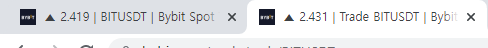 1) BIT 시세 (좌) 현물 2.419 달러 / (우) 테더 선물 2.431 달러 [ 테더 선물 > 현물 시세 , 포지션 진입 ]