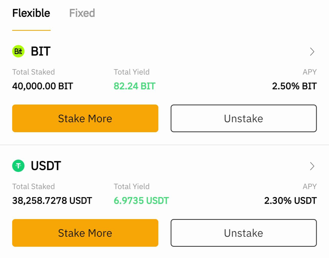 플렉시블에서 스테이킹을 한다. 혹시라고 선물 포지션이 청산당할 것같으면 조금씩 스테이킹 중인 돈을 빼서 선물지갑으로 옮기면된다.