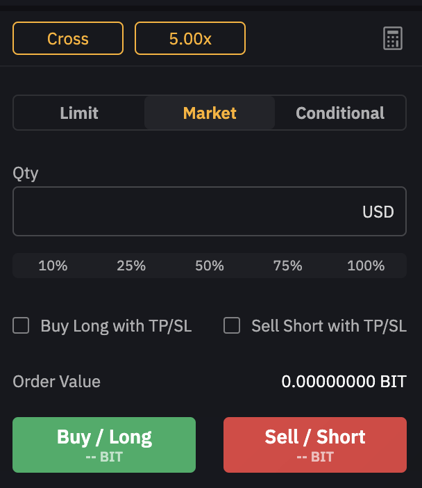 BIT코인 현물 풀매수하고 , 이것을 현물지갑 ( spot ) -> 선물지갑( Derivatives )으로 옮긴뒤 BITUSD 1배숏 100%를 한다.