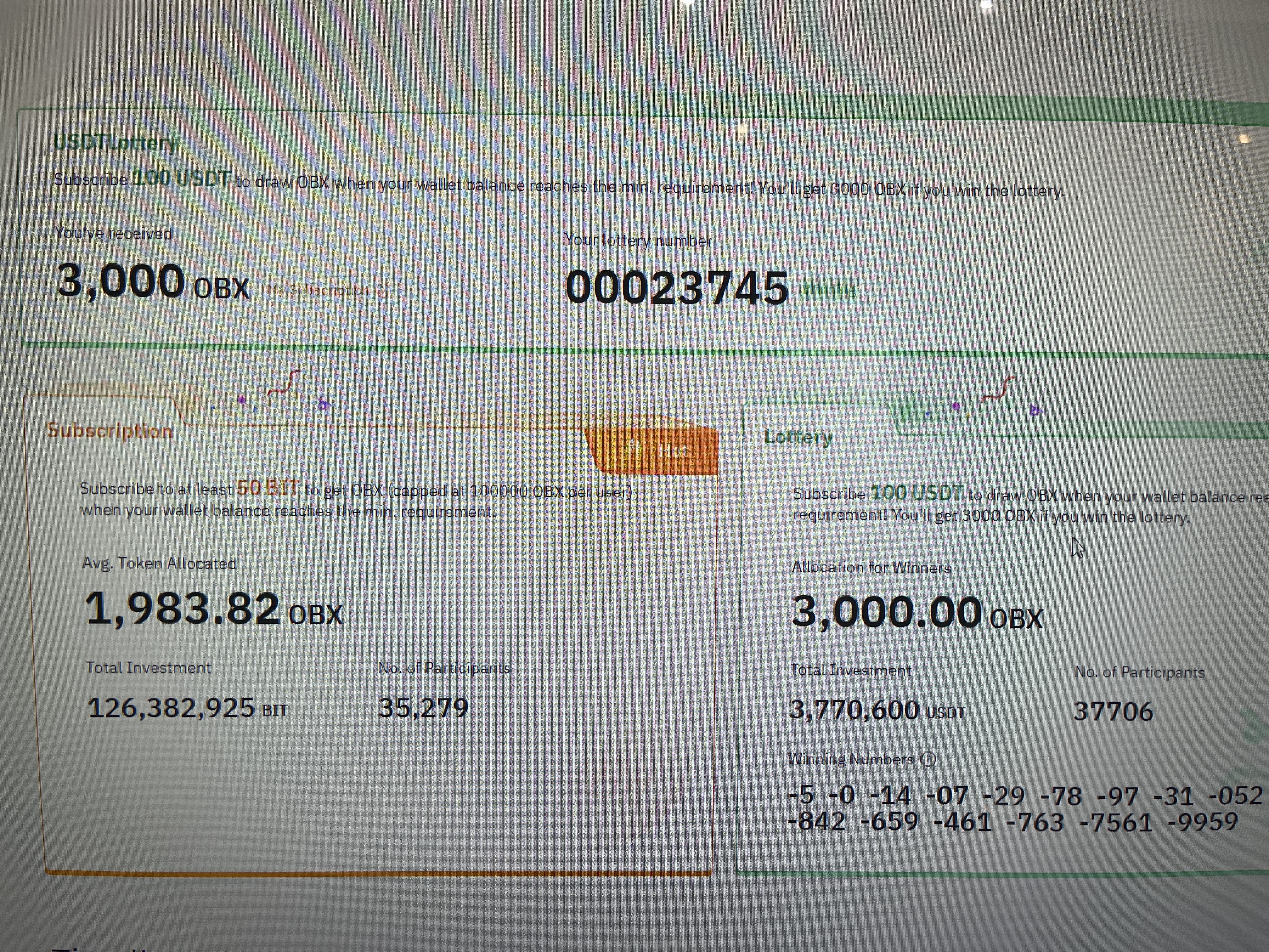 근데 난 진짜 운이 좋은 놈이라서 런치패드 테더( 로터리)로 신청했는데 당첨 되어서 3000개의 obx코인까지 당첨되었다.