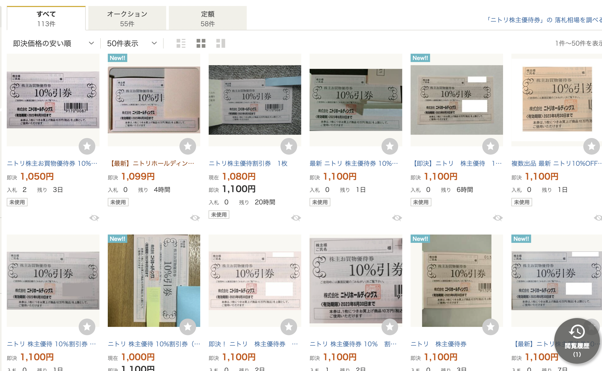 야후에서 니토리 주주우대권 (할인 10% )을 사세요 1000엔밖에안함