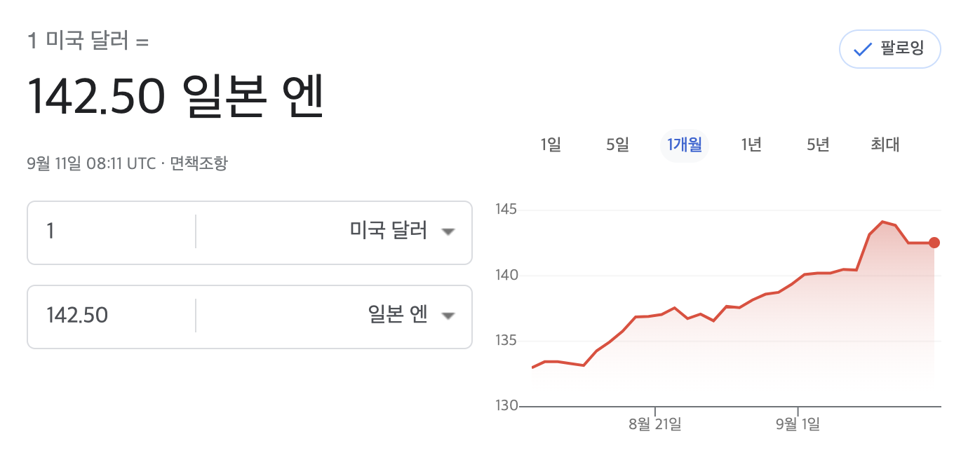 최근 1달러당 142.5엔으로 매우 행복한 생활을 보내고 있는데