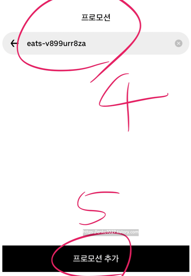 2. 프로포션 [ プロモーション ] 클릭 -> [ eats-v899urr8za ] 입력 하면 끝