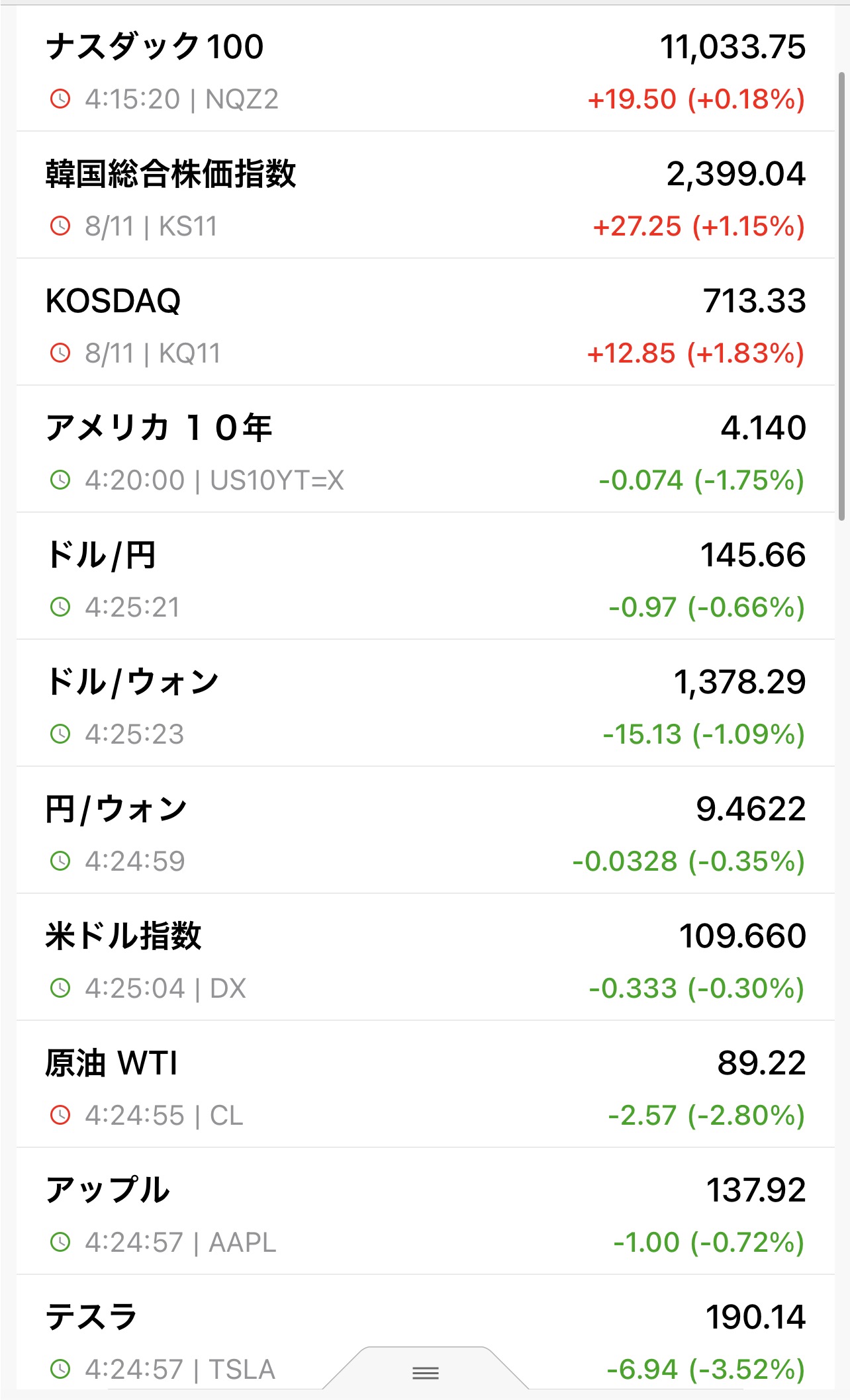 애플 137.92달러 , 테슬라 190.14달러