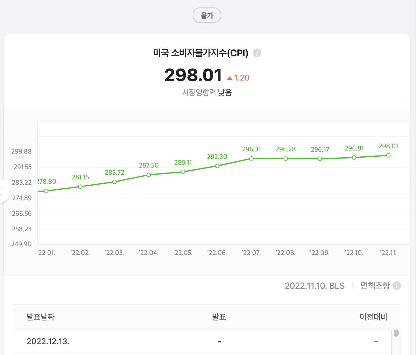그럼 지금 고려해야하는 것은 12월 13일에 미국 CPI 발표 + 14일에 미국 FOMC에서 금리 인상 발표다.
