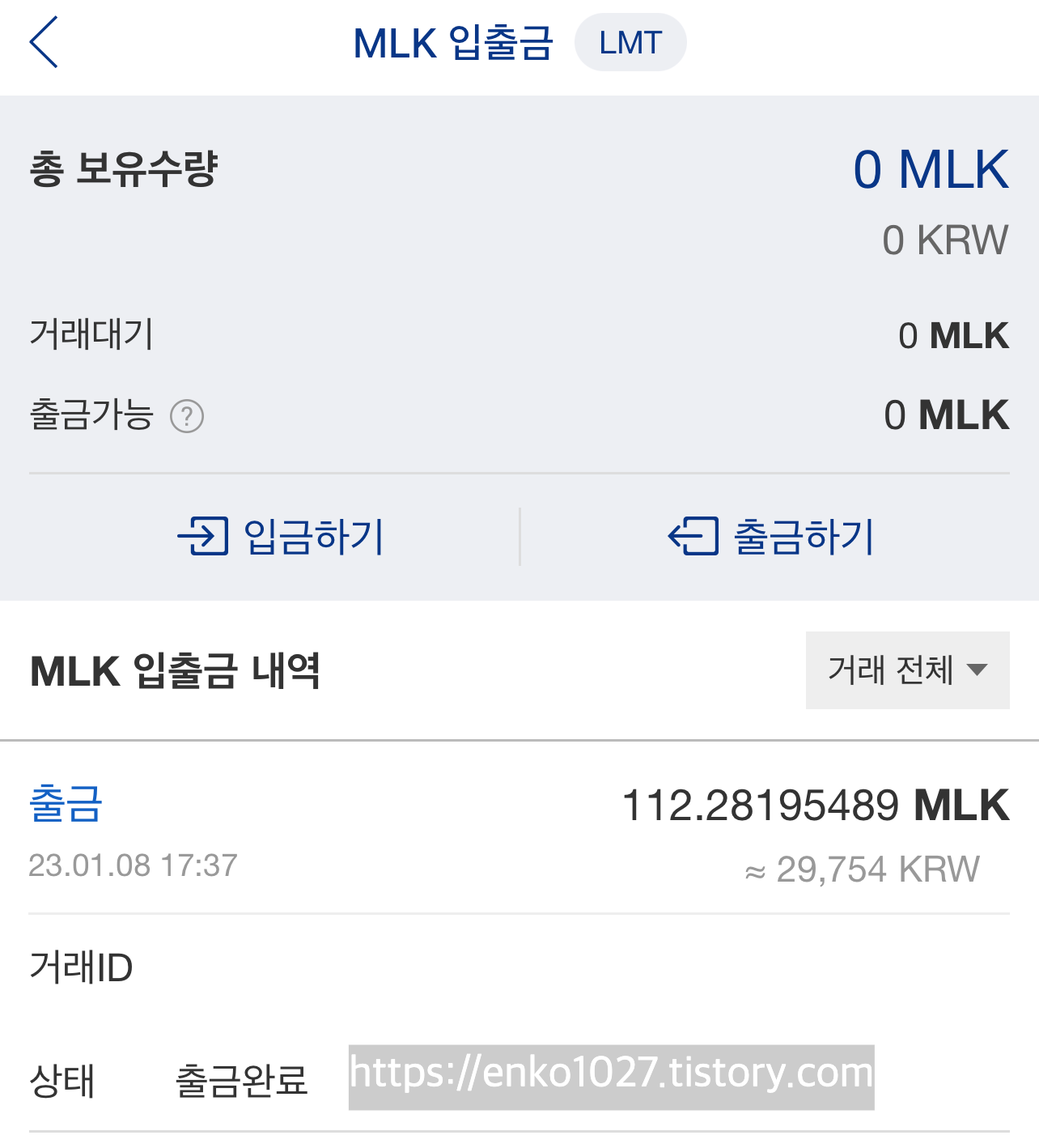 업비트에서 밀크 코인을 3만원치 매수후 , 밀크앱으로 출금시켰습니다.
