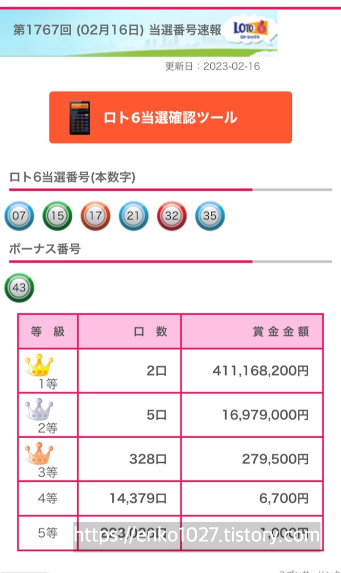 그리고 친구 따라서 재미로 샀었던 일본의 로또6 ( ロト6)