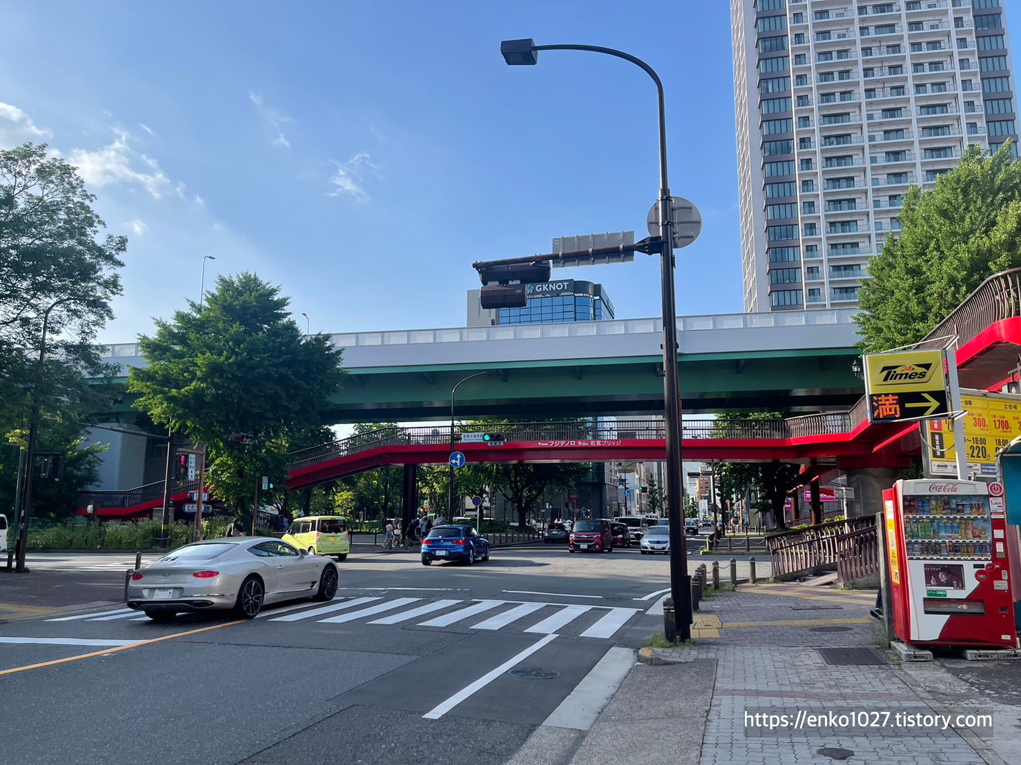 택시를 내린 지점에서는 시뻘건색으로 색칠된 육교가 있어서 올라가 봤습니다.