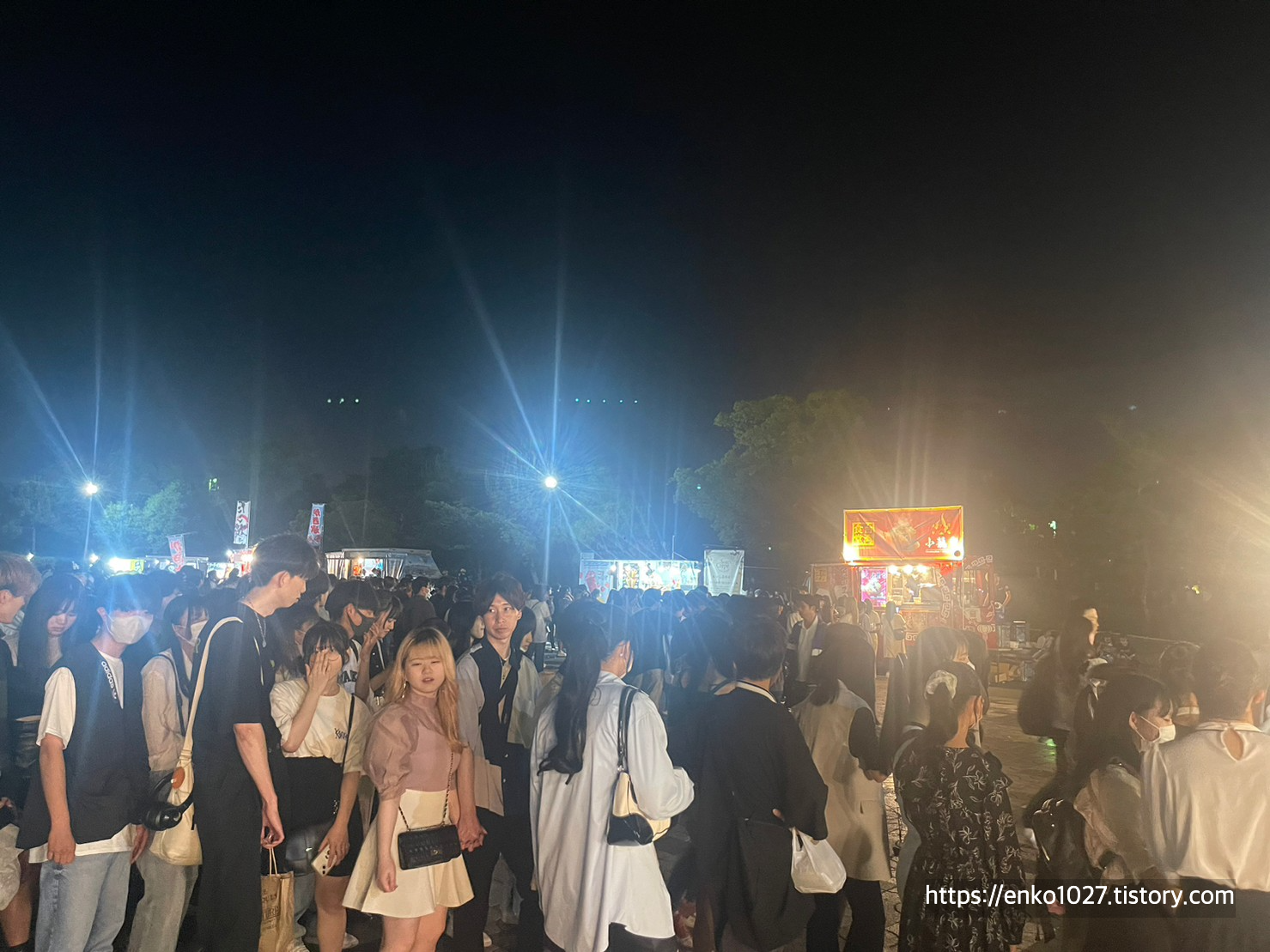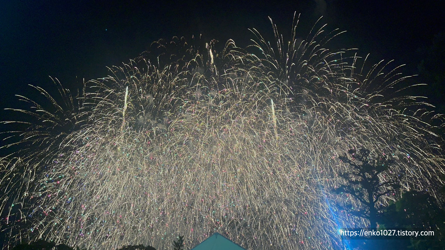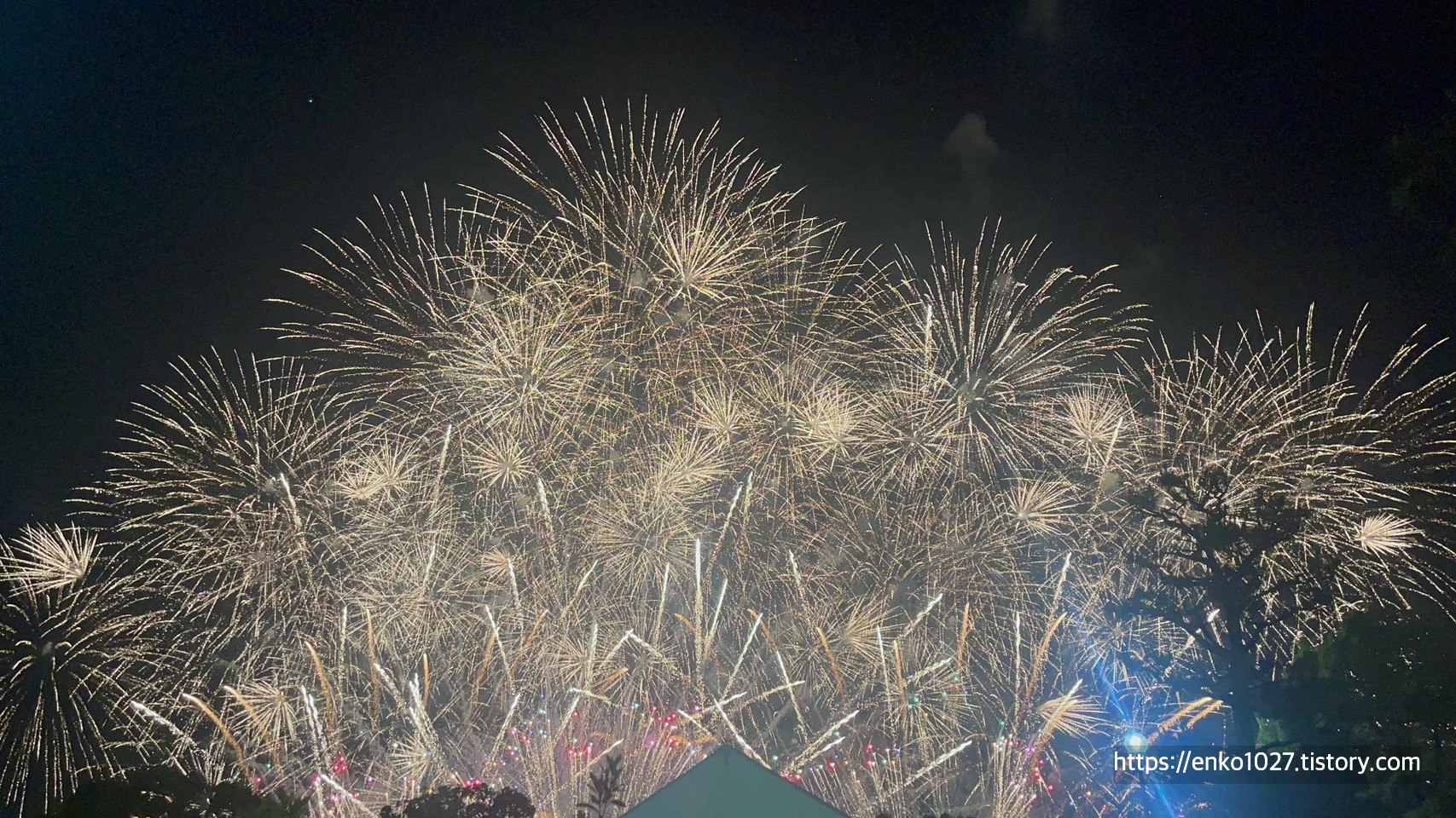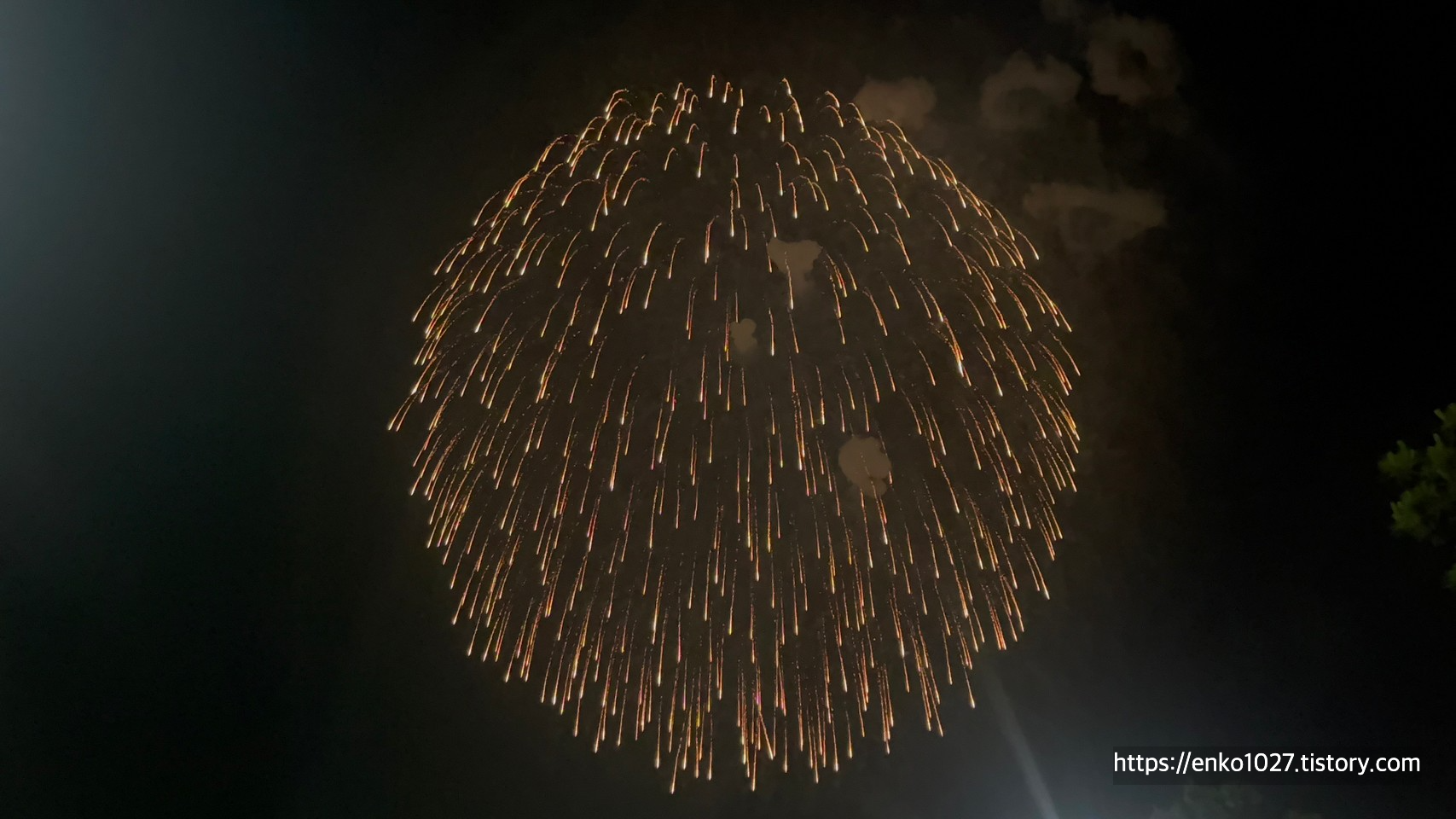 택시를 내리고 불꽃놀이 장소로 이동하던 중에 폭발음이 들려서 확인했더니 한 발씩 쏘기 시작했습니다.