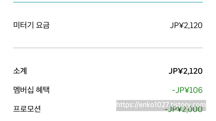 택시는 2120엔이 나왔지만 ,