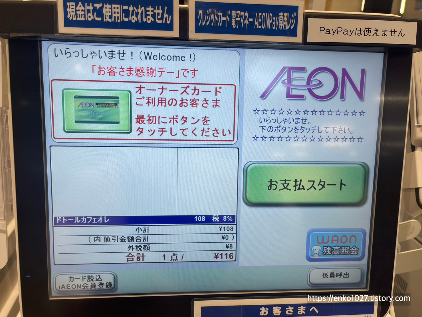 계산을 시작하기 전 화면을 봤더니 이온 주주카드를 갖고 있습니까??라는 질문이 나오네요.