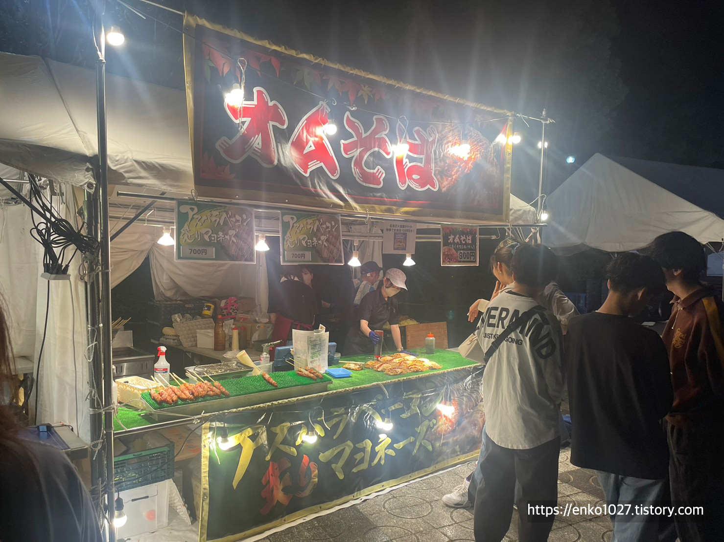 동기들과 저녁밥 대신 야타이에서 뭔가를 사 먹기로 했습니다.