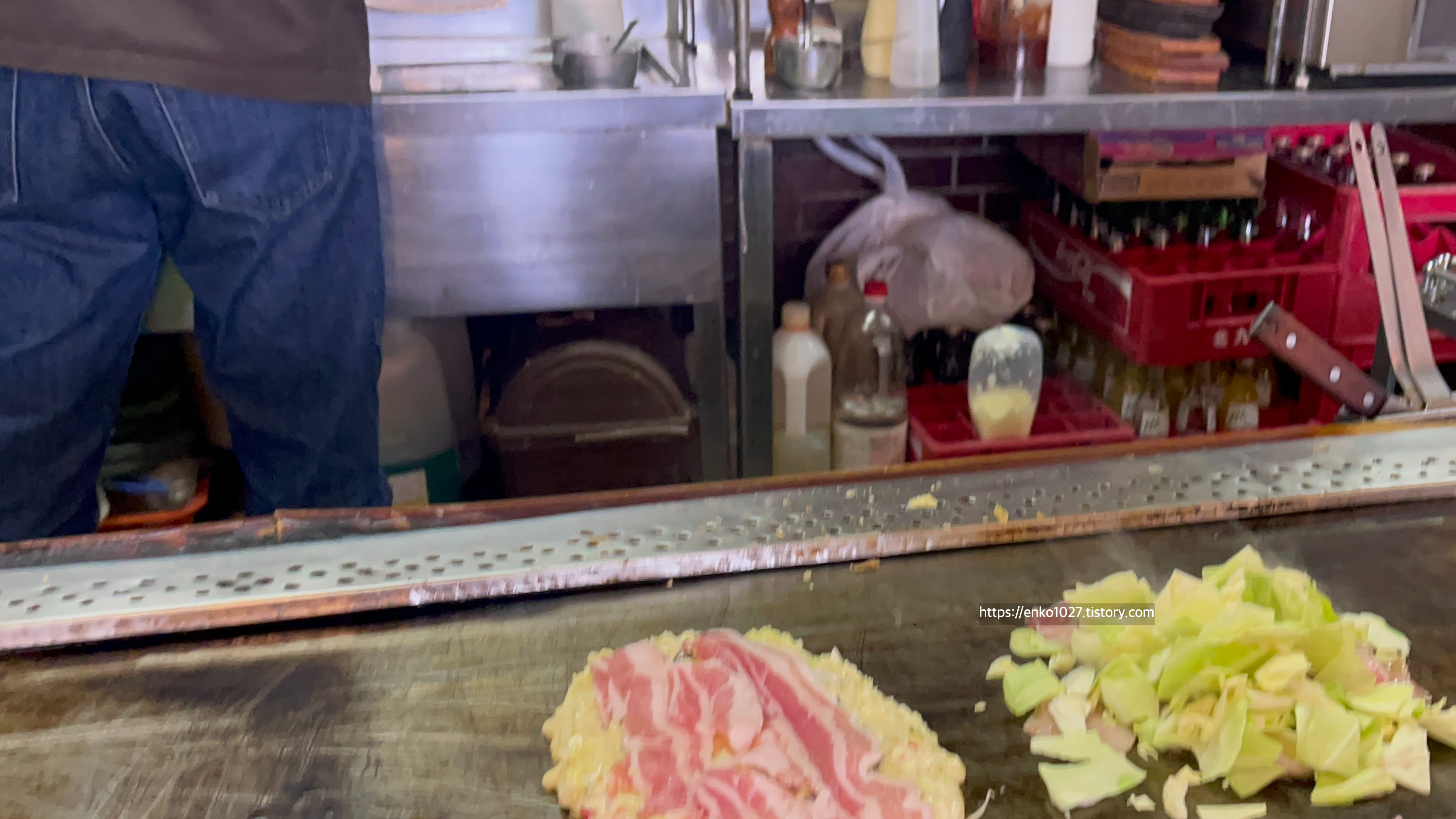 점심밥으로는 오꼬노미야키를 먹었습니다.