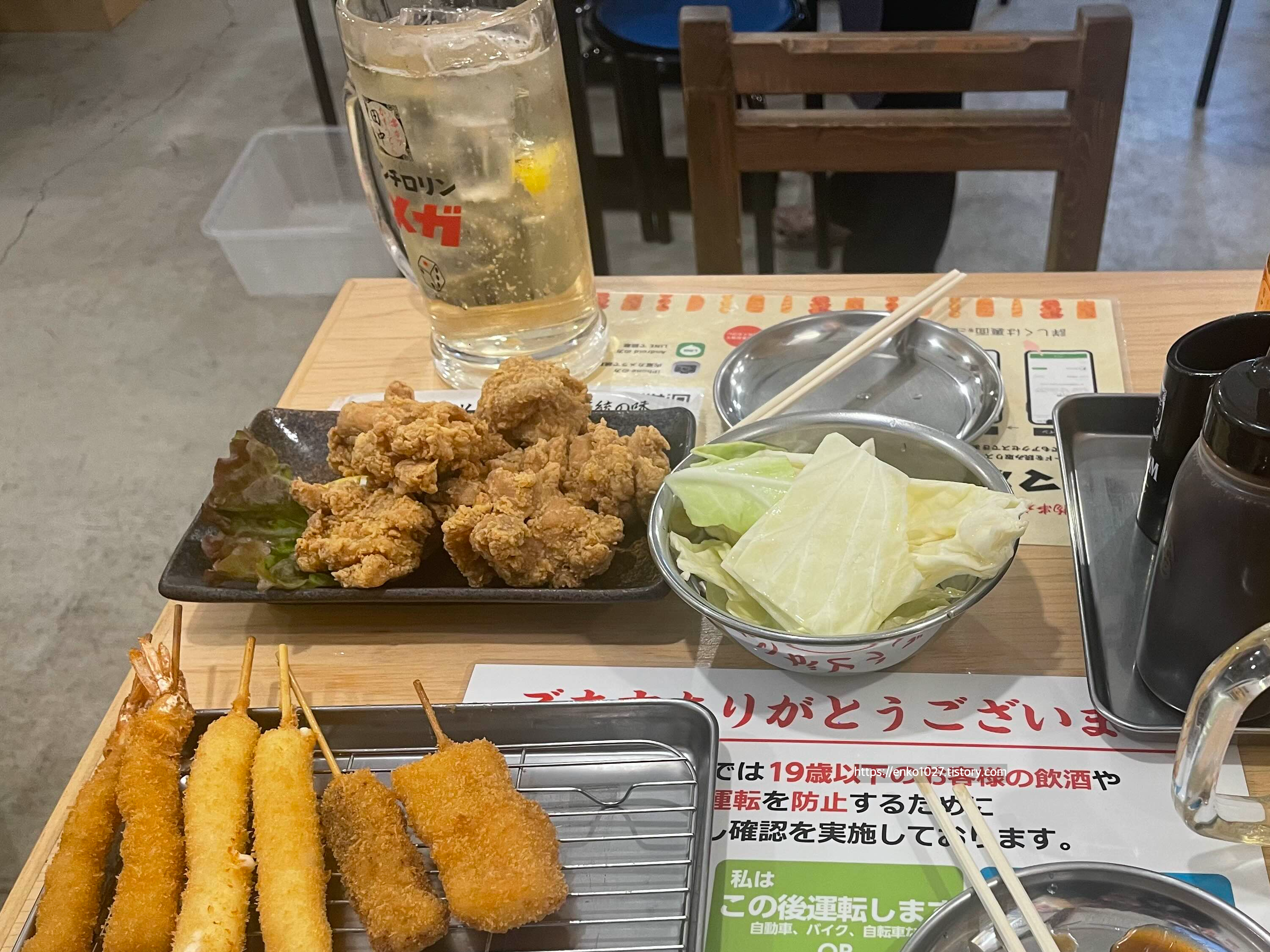 저녁밥으로는 쿠시카츠를 먹었습니다.