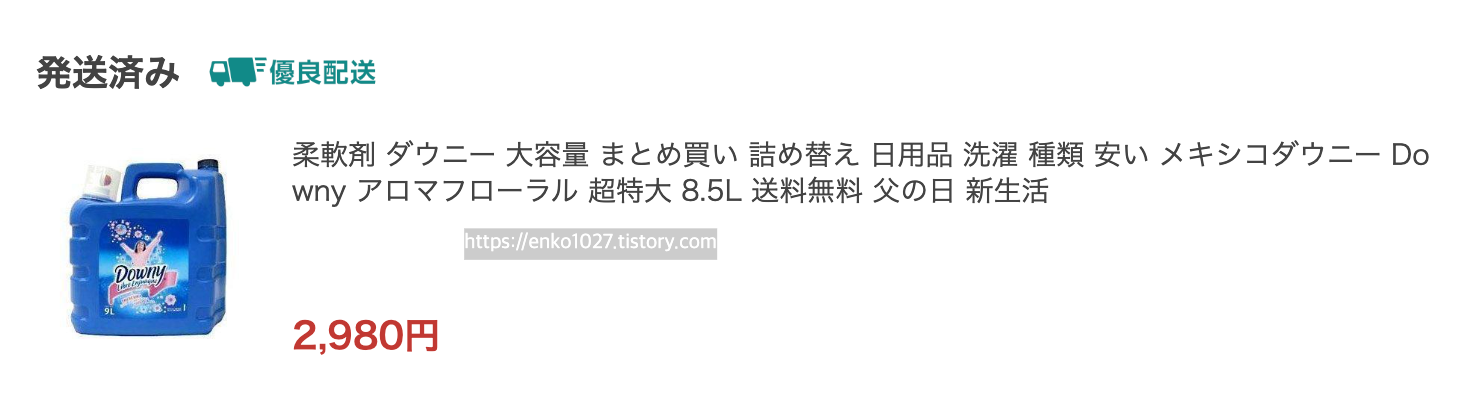 그리고 다우니 섬유유연제 8.5L 2980엔에 택배비도 무료길래 바로 샀다. ㅋㅋㅋㅋ