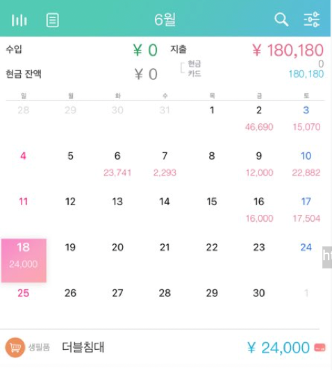 하... 이번달 가계부... 이번달에만 18만 180엔이나 썼다.