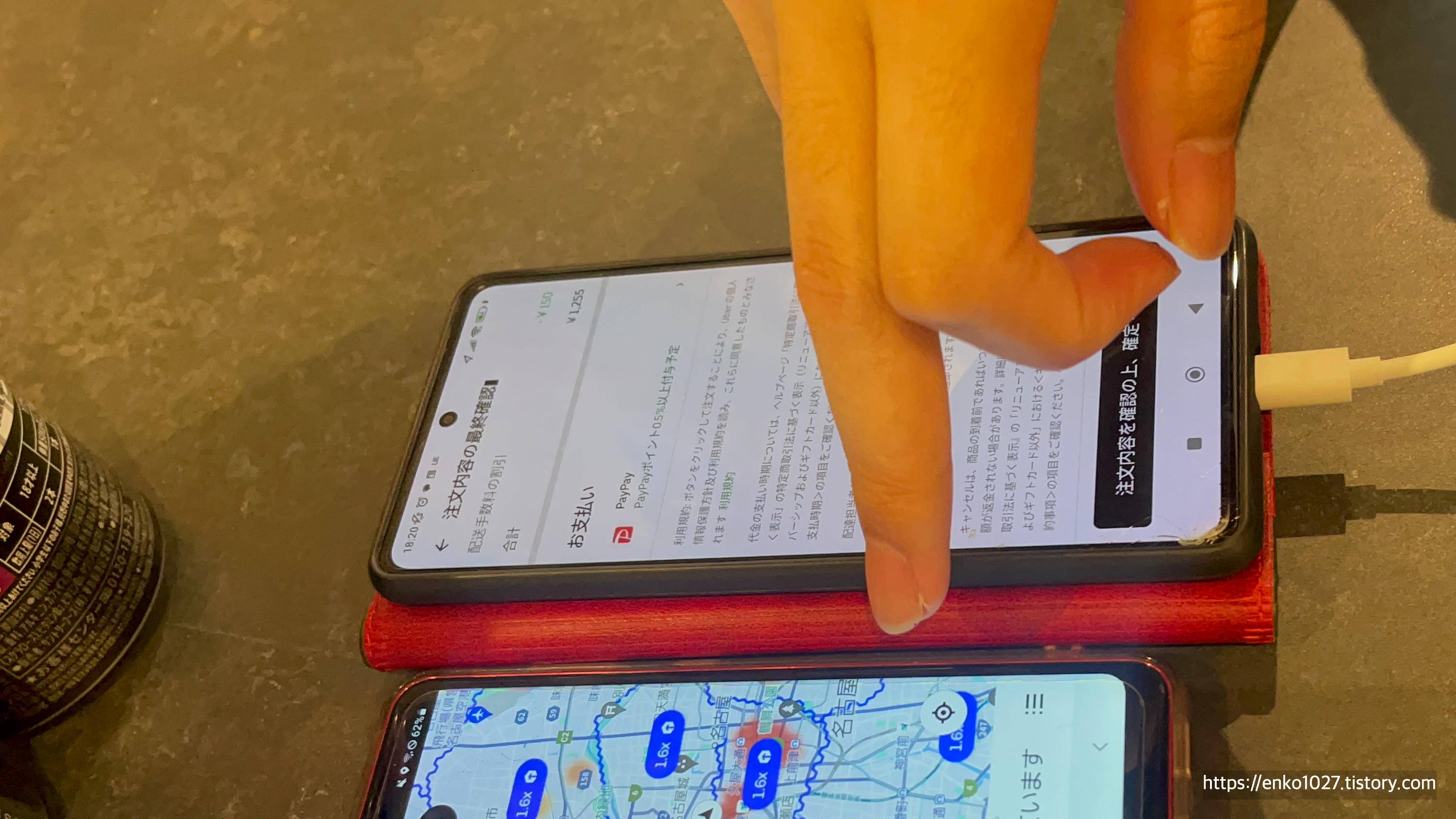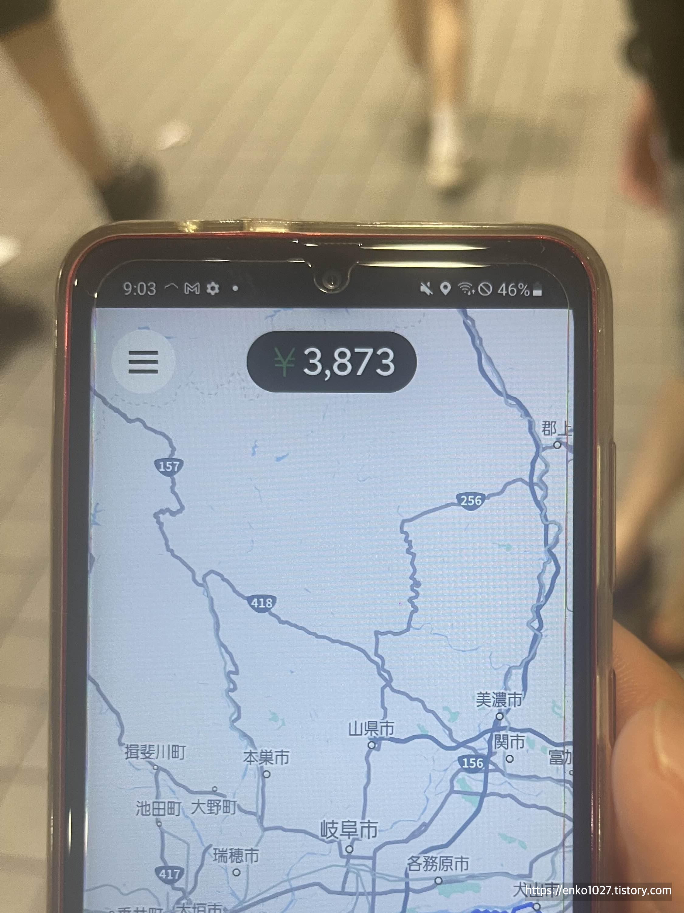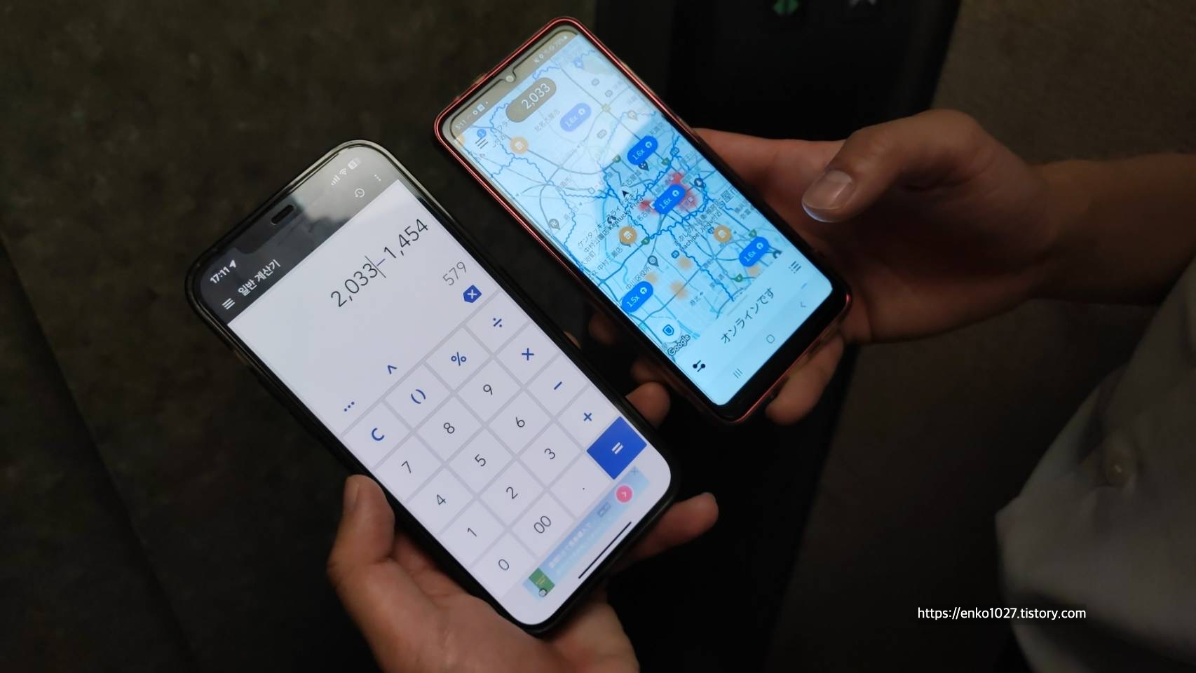 동기랑 싱글벙글 중간 계산중 ~ 배달 한건에 579엔을 벌었네요 .