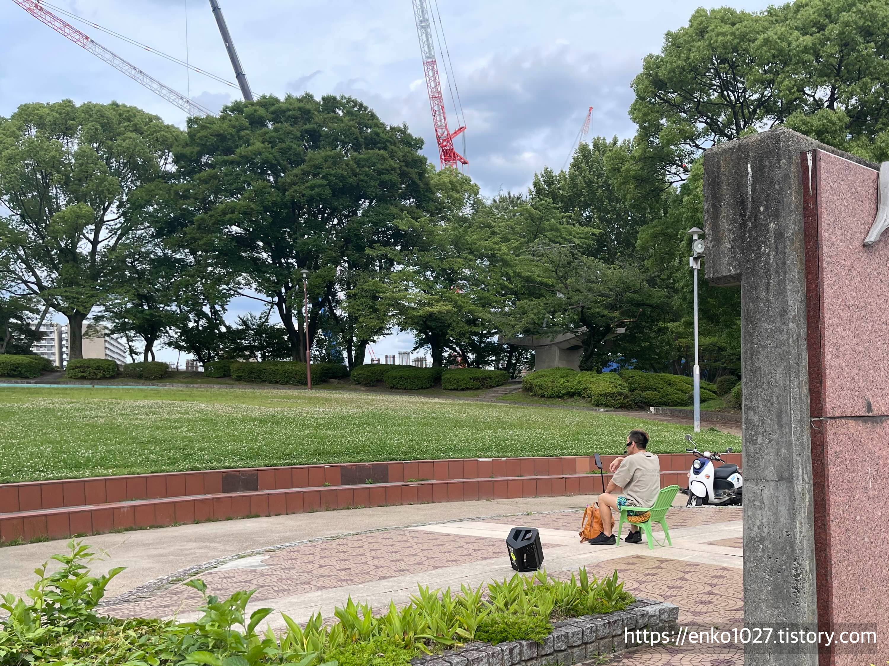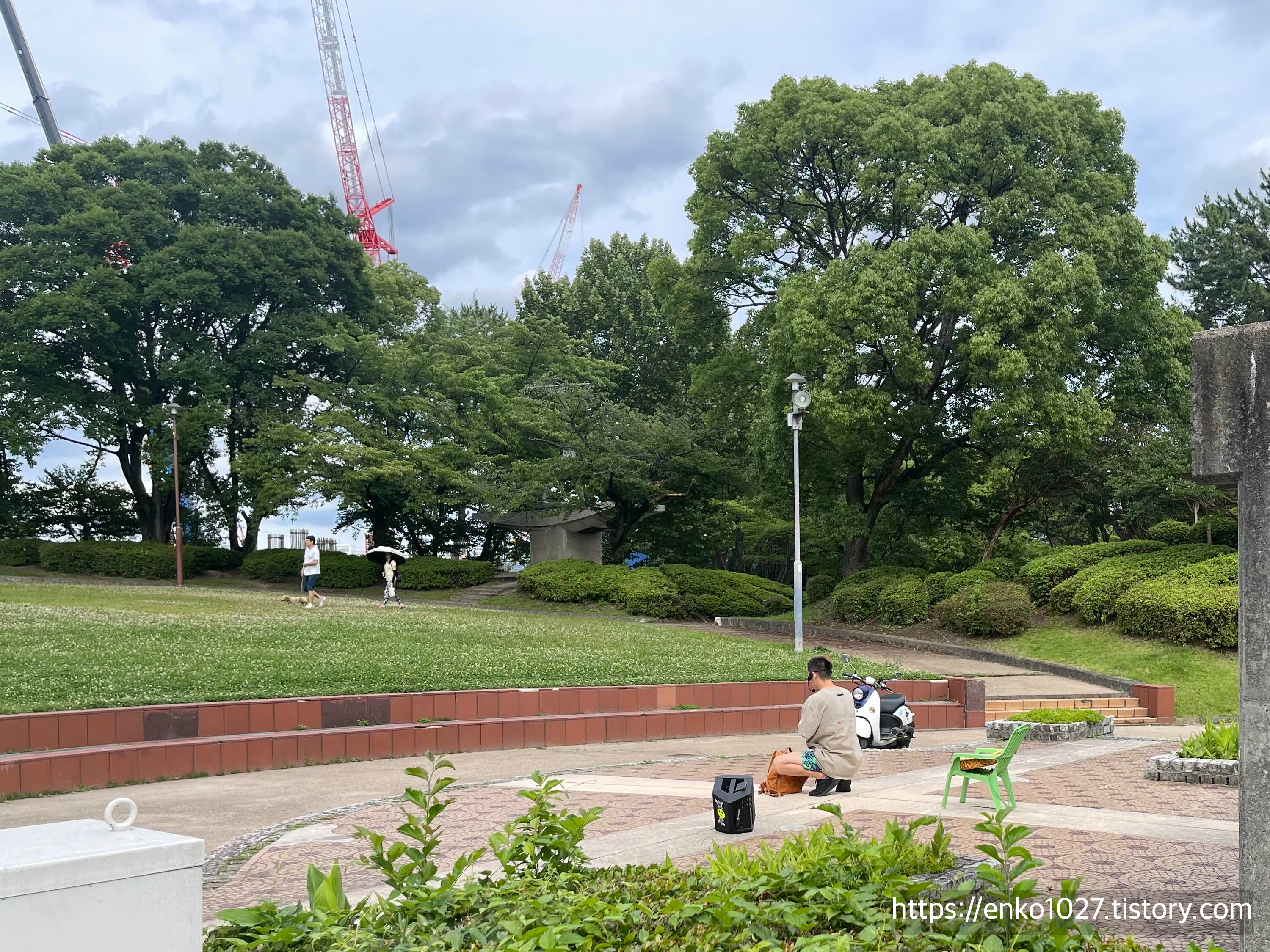 공원에서 산책 중인데 유튜버? 를 발견했습니다. 뭔가를 촬영하면서 노래 부르고 춤추고 하더라고요.