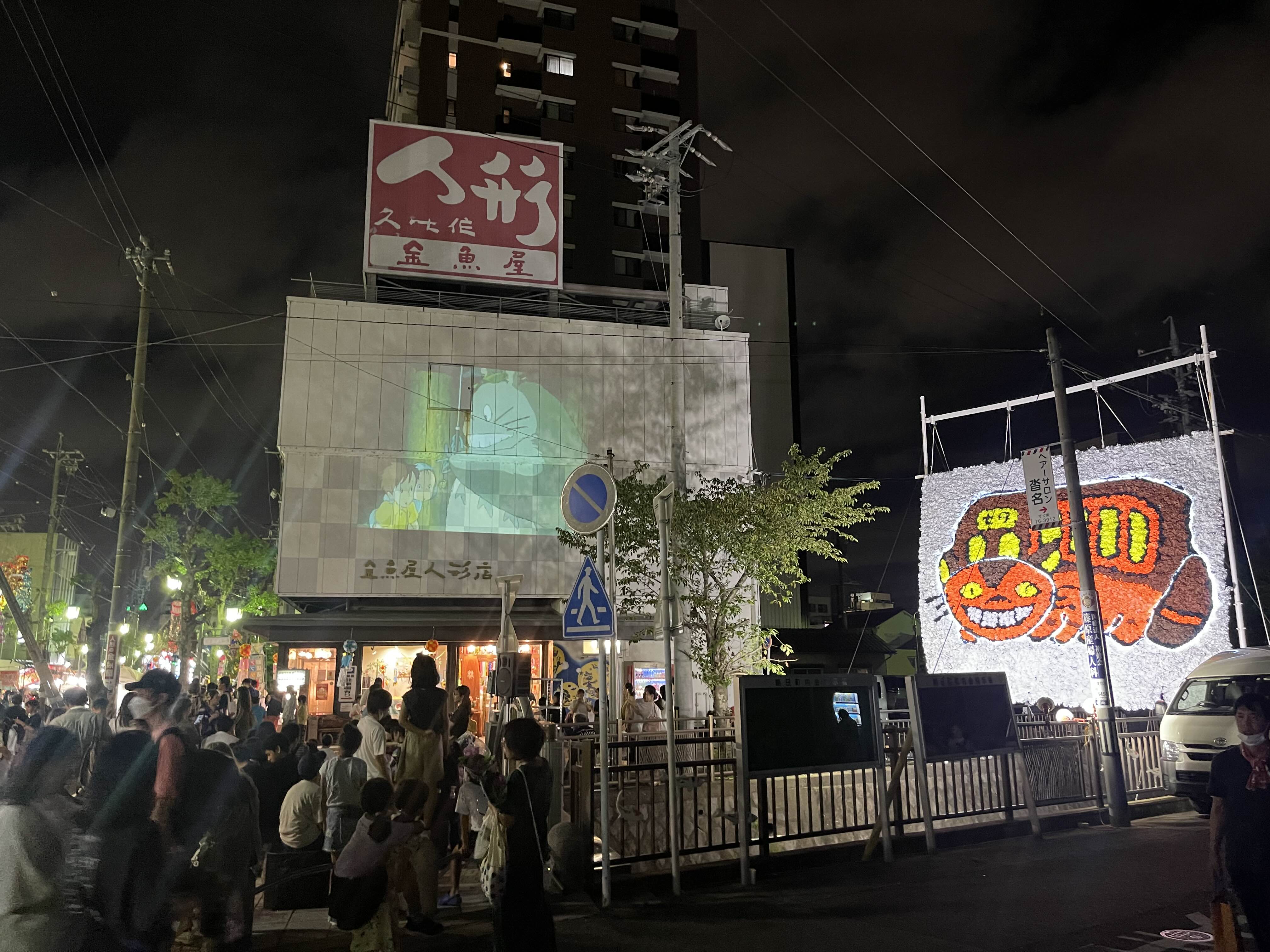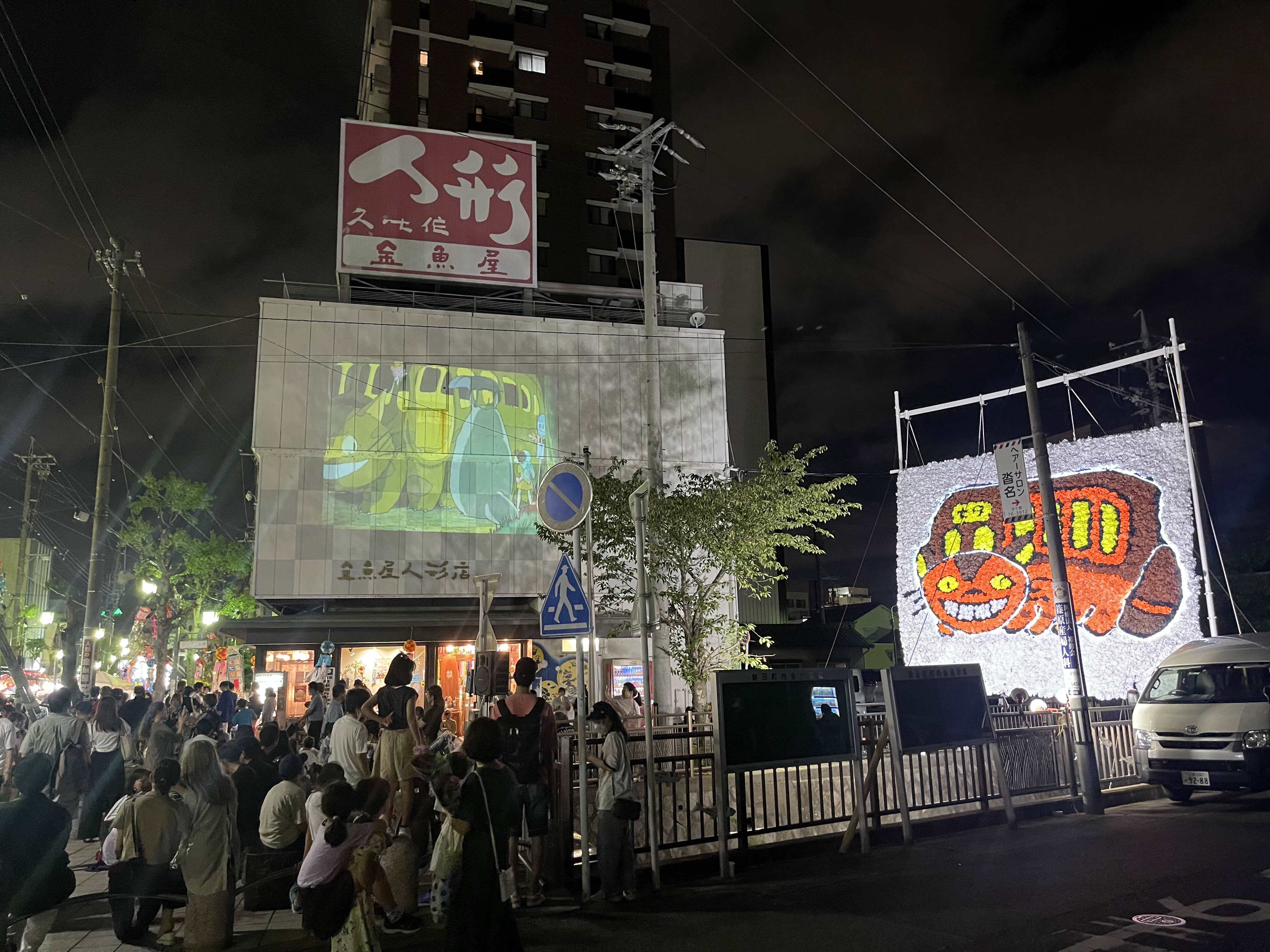 어느 순간 날이 지고 , 사람들이 옹기종기 모여서 뭔가를 바라보고 있길래 쳐다봤더니 토토로였습니다.