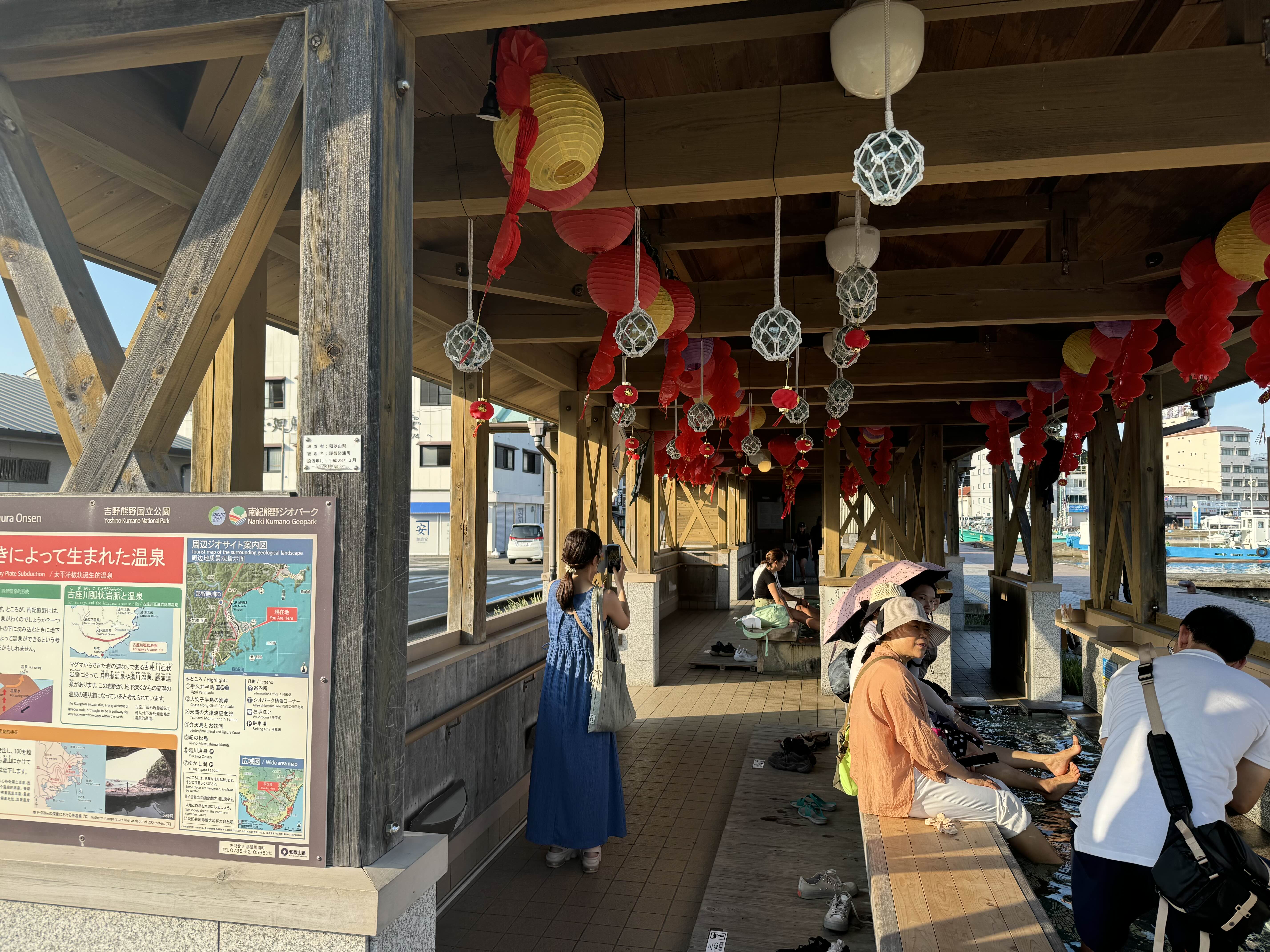 족욕을 즐기고 있는 할아버지 /할머니 / 외국인들이 많이 있었다.
