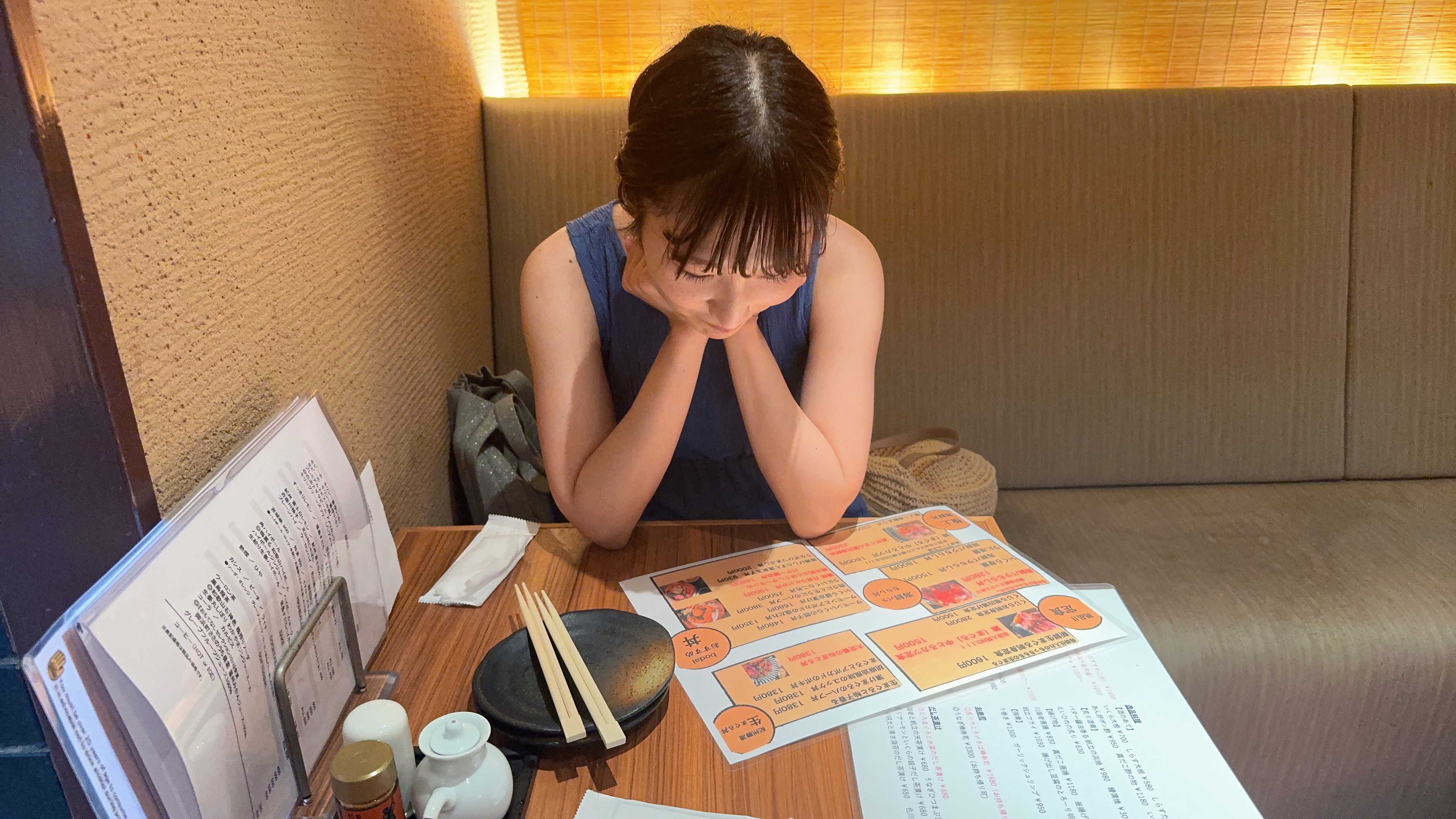 5시 30분이 되어 가게에 들어와서 뭘 먹을지 고르고 있는 여자친구