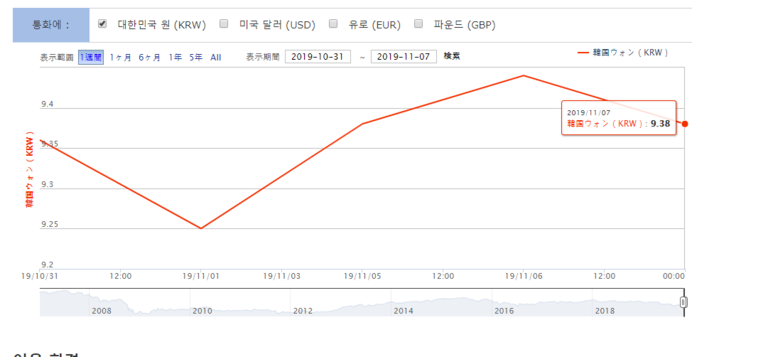 익스프레스 송금은 환전수수료가 없으니까 차트를 보고 계산해야한다.