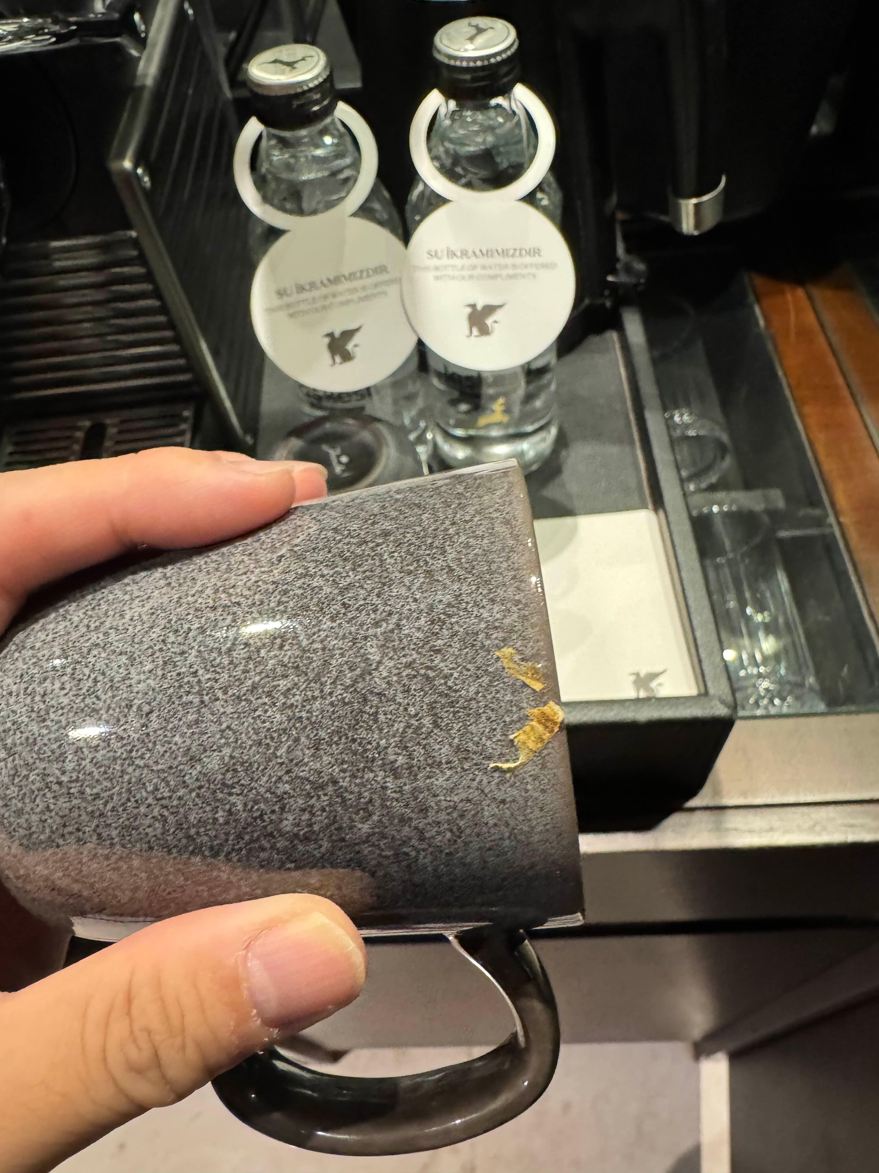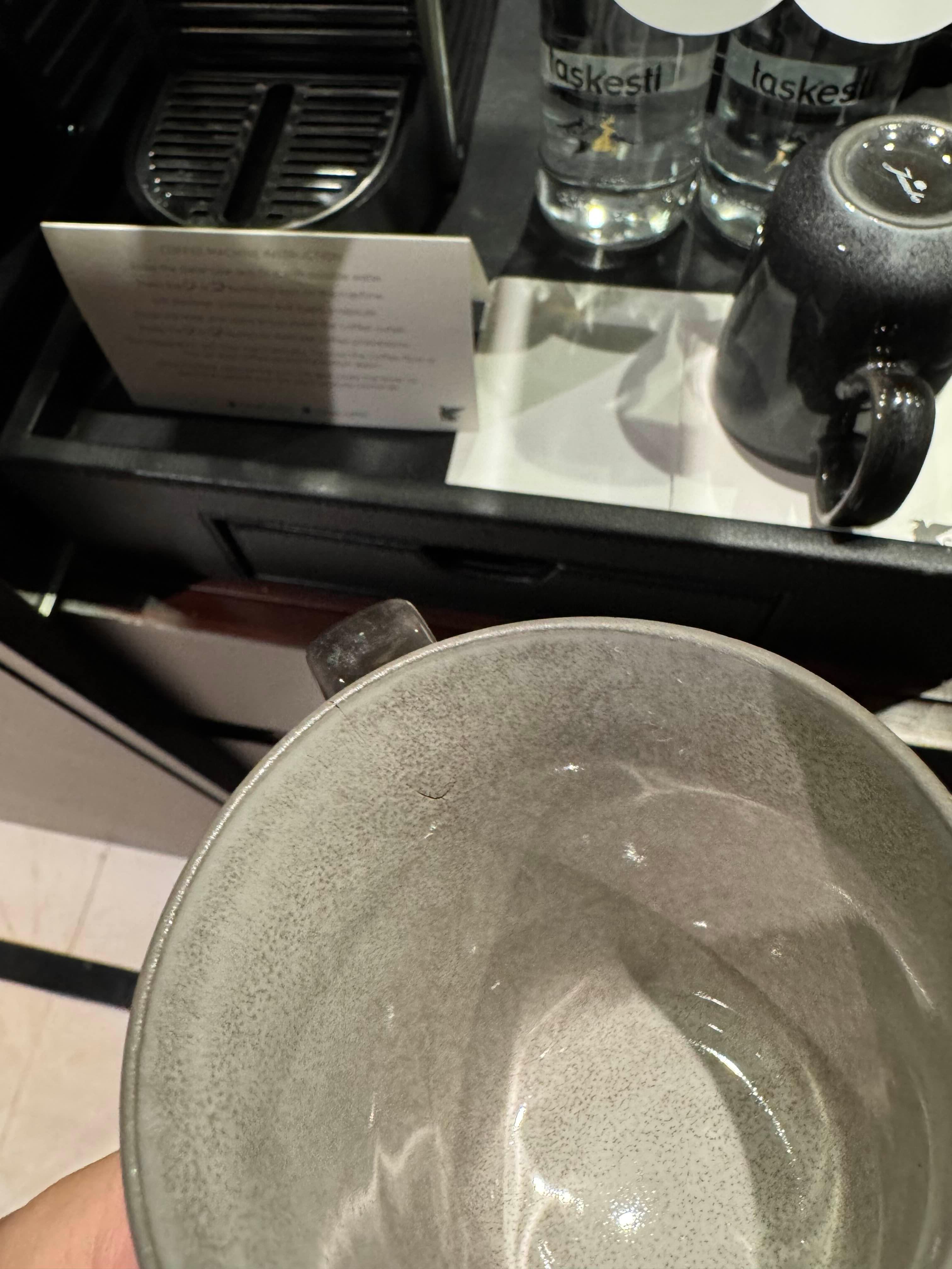 컵의 위생상태도 좋지 않았다. 뭔가 묻어있었으며 , 컵의 안쪽에는 금이 가있거나 깨져있었다.