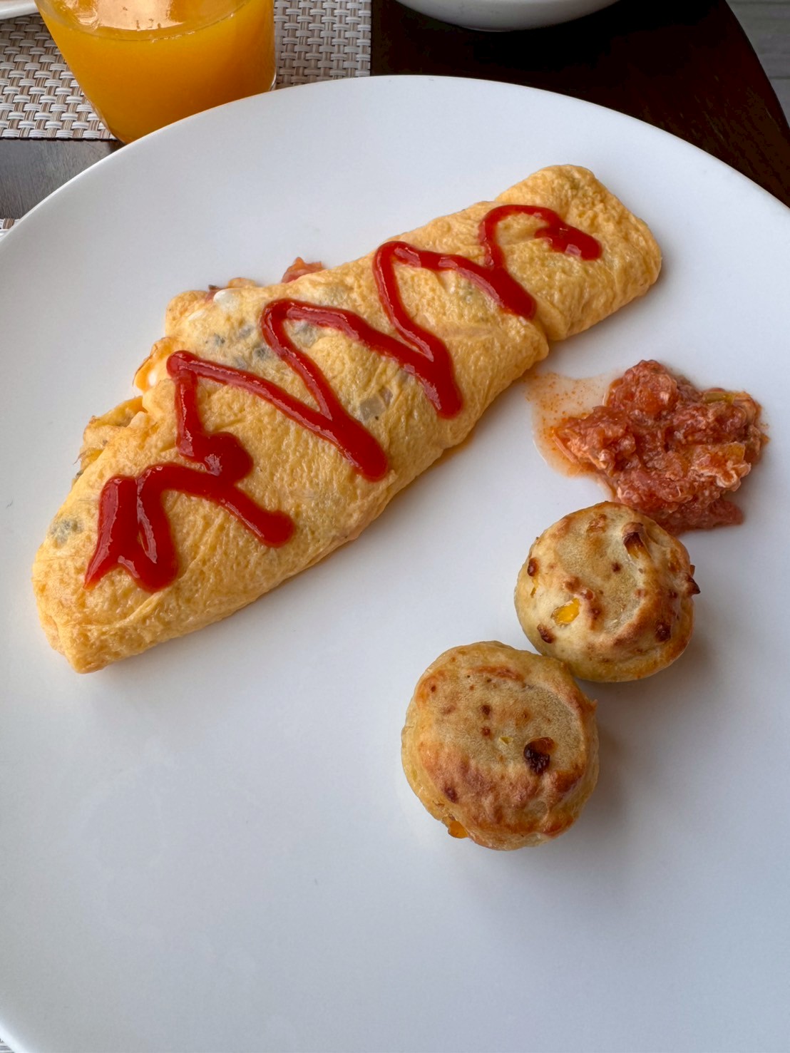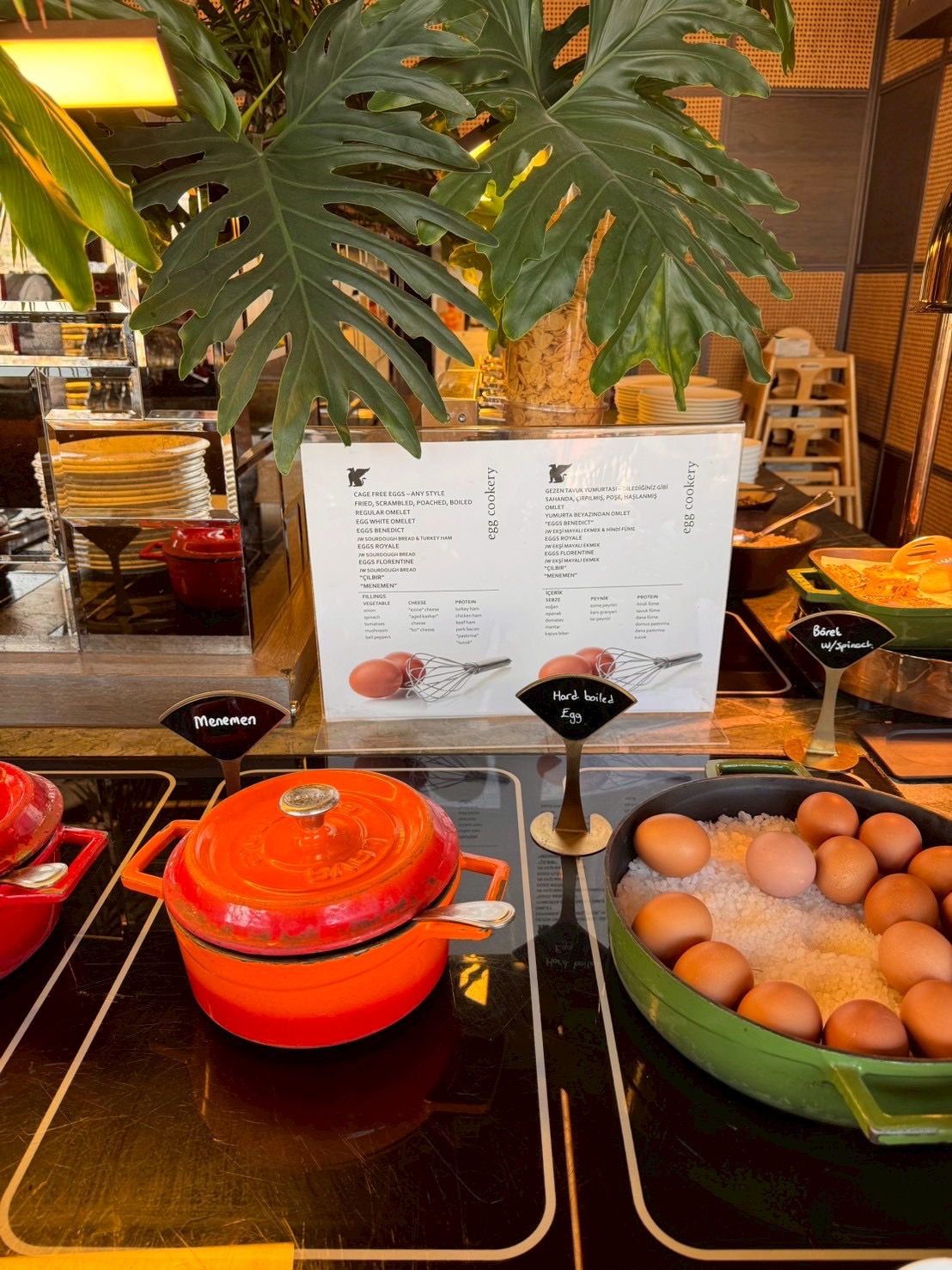 삶은 계란도 있었으며 , 주방장에게 부탁하여 스크램블 및 오믈렛도 먹을 수 있었다.