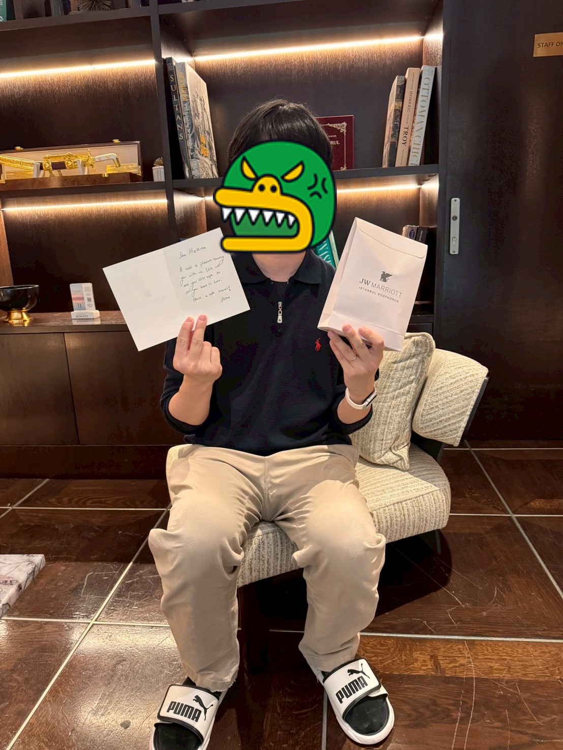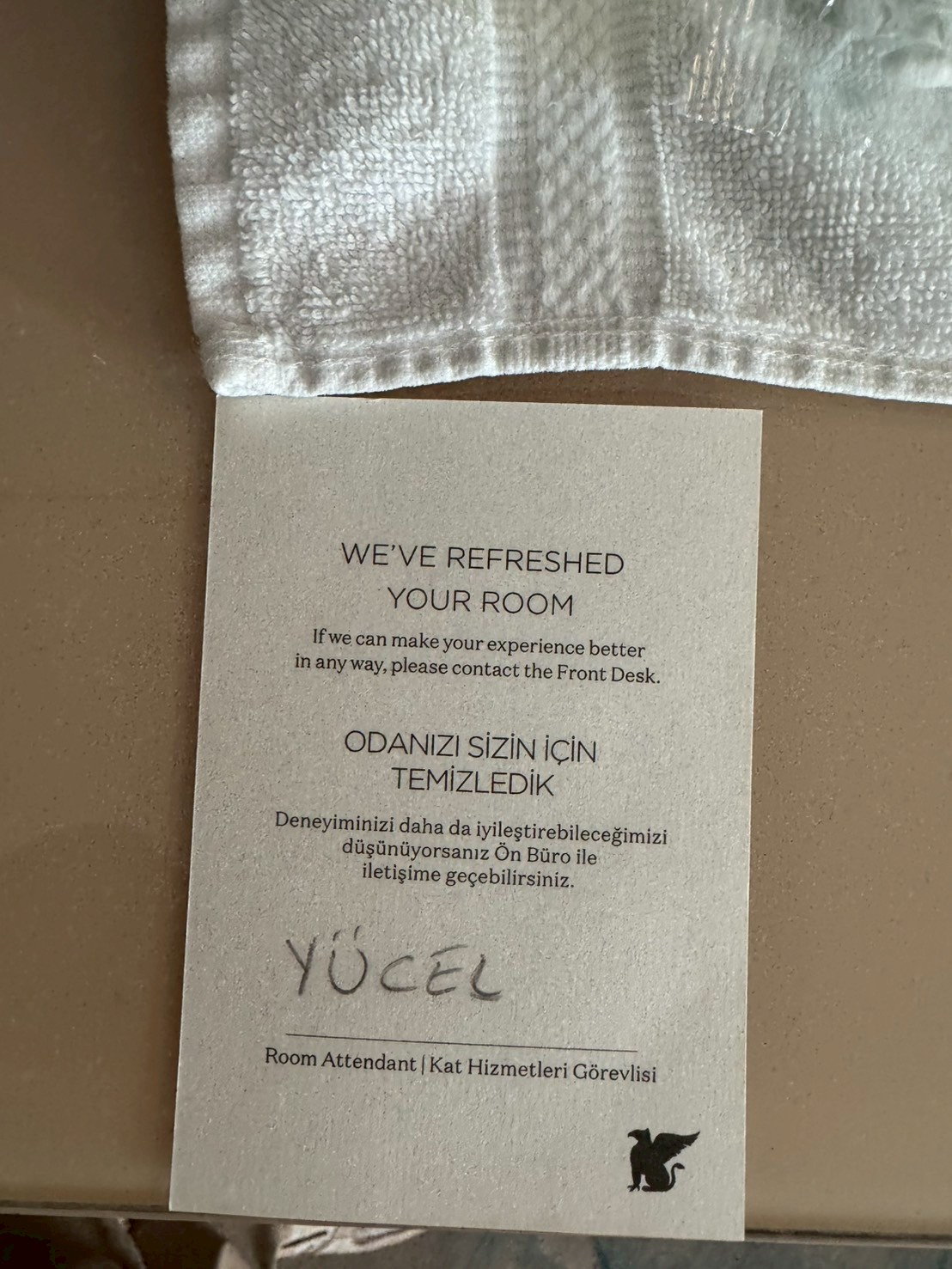 방에 들어갔더니 작은 편지가 있었다. 대충 메리어트에 방문해 줘서 고맙다는 이야기.