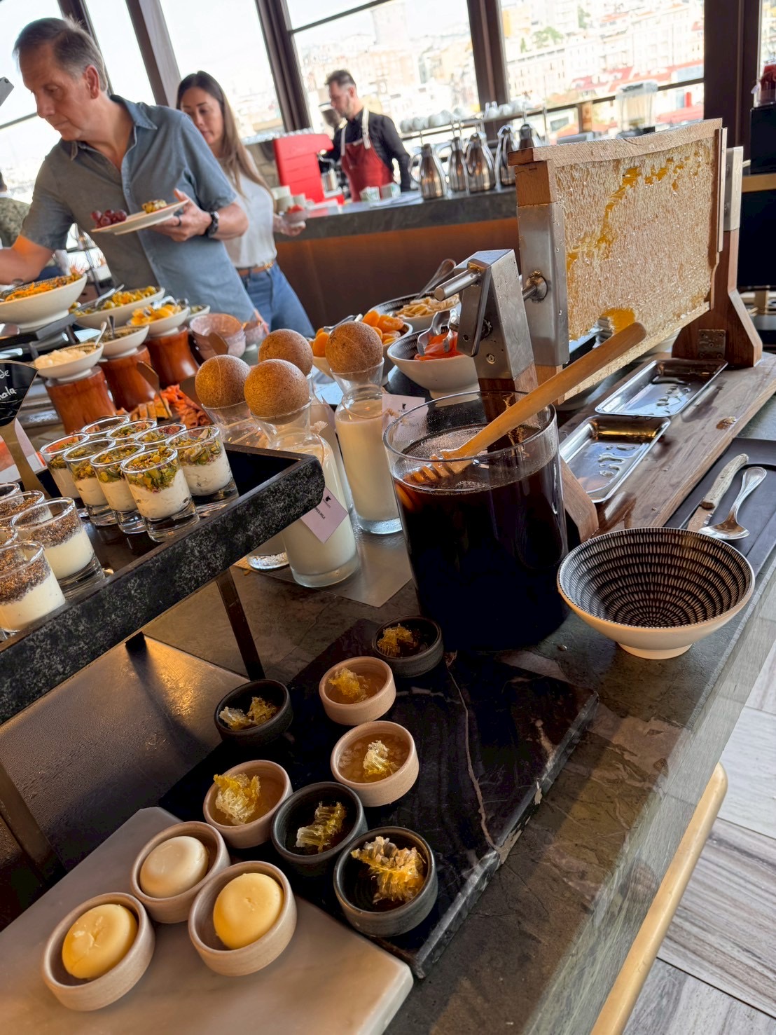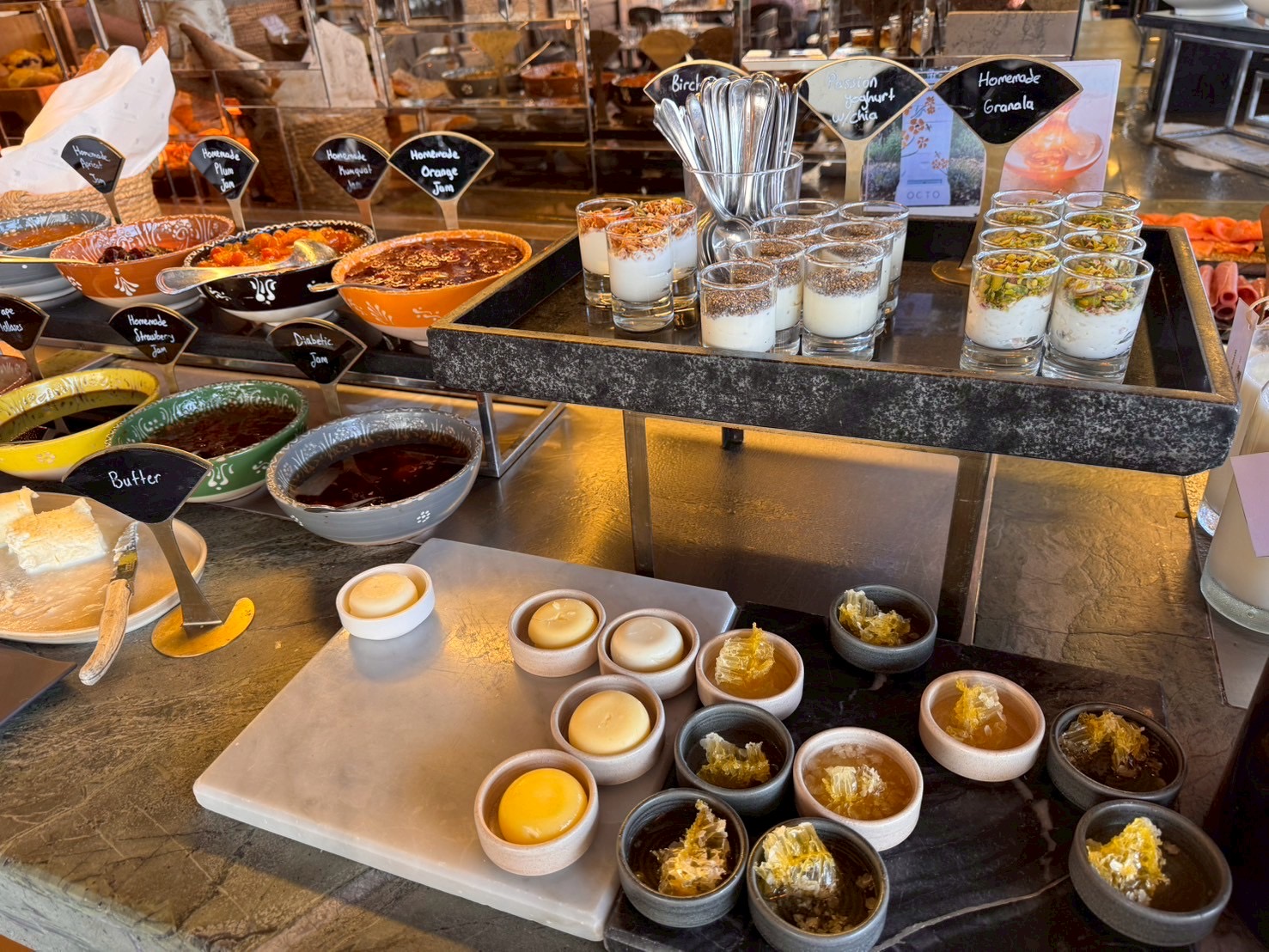 빵과 잼, 시리얼과 꿀이 배치되어 있었다. 여기서 꿀은 진짜 잘라서 먹는 꿀이었다.