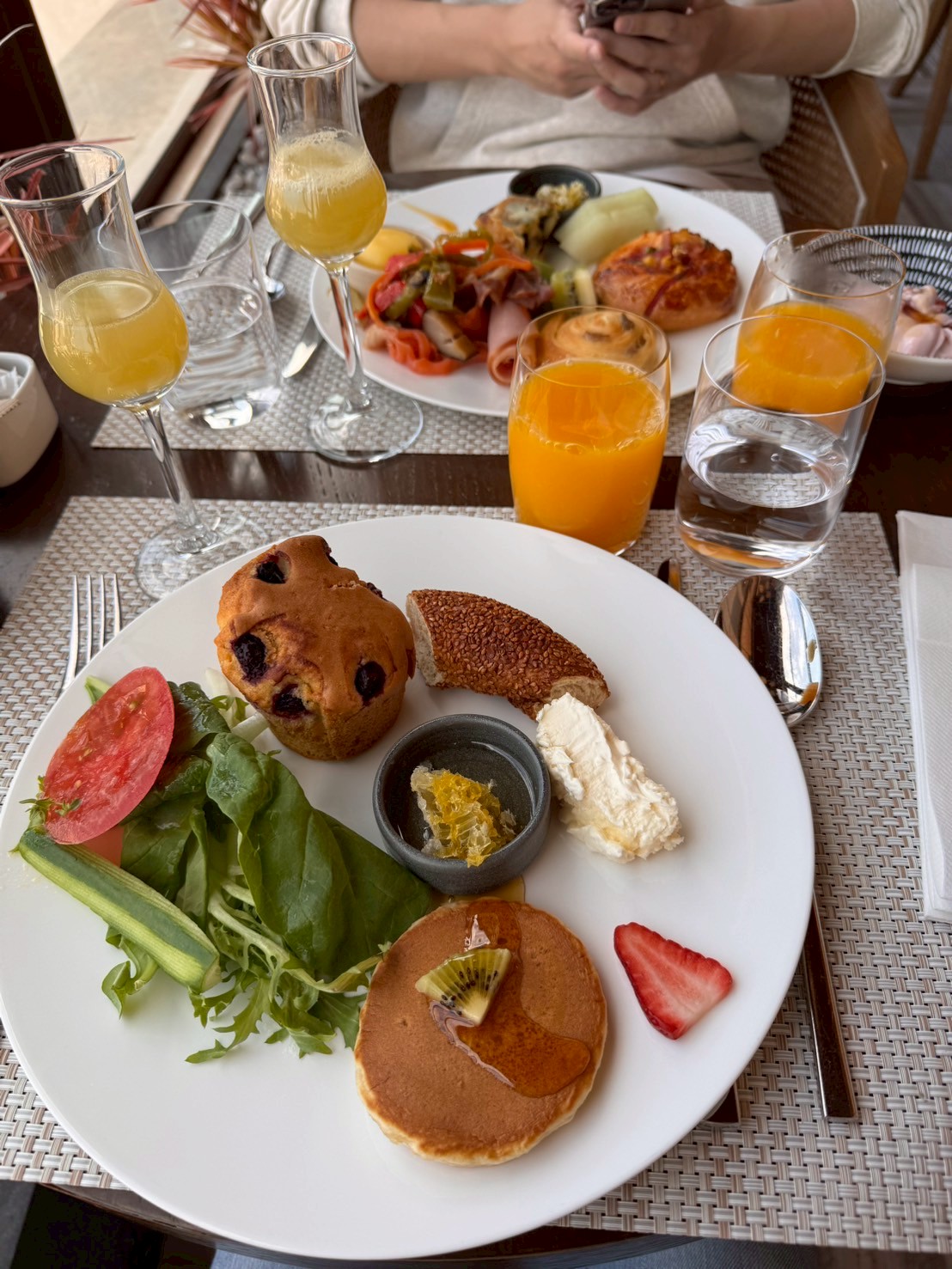 그냥 와이프한테 잠깐 외출하기 10분 전에 부자의 마음을 느끼고 싶다며 , 1층에 먼저 내려가 있을 테니 10분 뒤에 내려오라고 말한 뒤 카운터의 직원에게 아이폰 에어드롭으로 사진을 전송했다. 직원은 미안하다며 우리가 먹은 아침밥을 무료로 제공해 줬다.