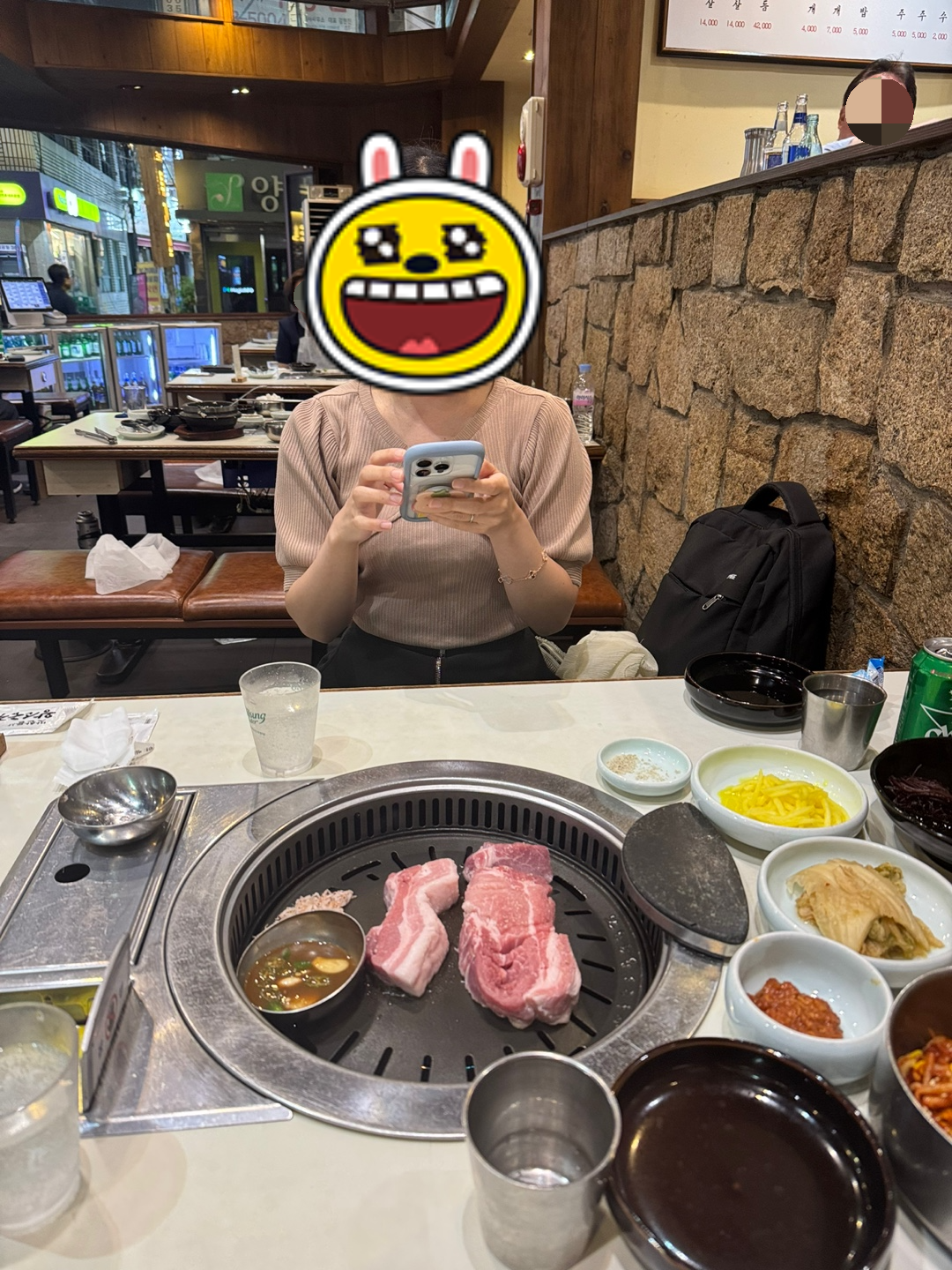 택시 타고 서면으로 돌아와서 삼겹살을 먹었다. 난 삼겹살을 좋아하는데 와이프는 목살을 좋아한다.