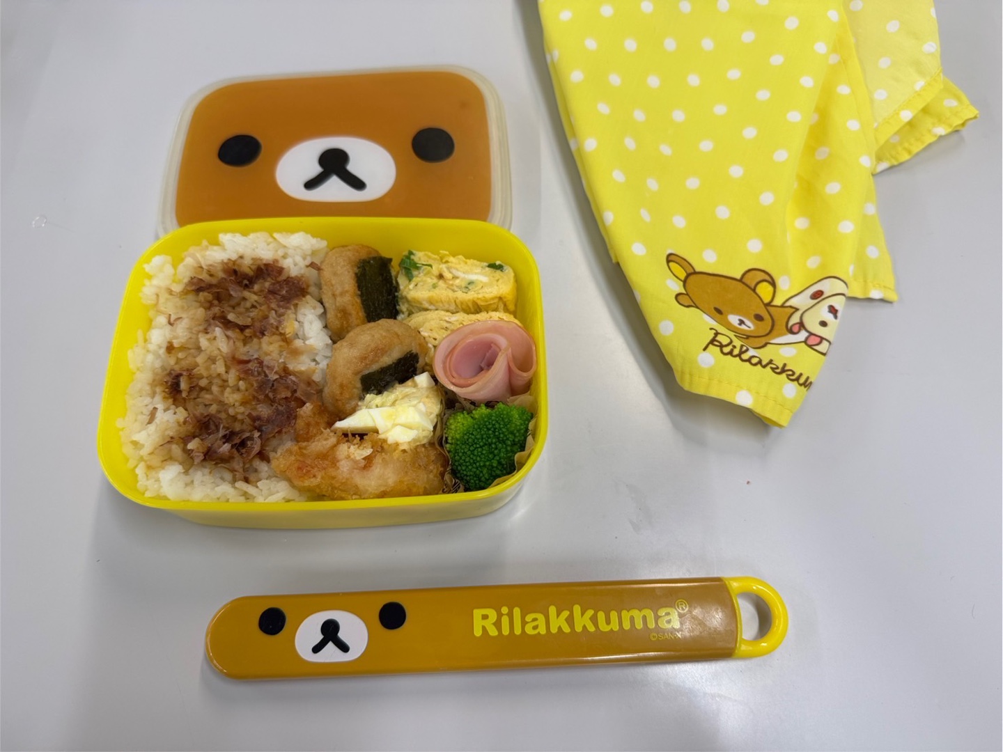 도시락 통과 수저가 너무 귀엽다. 전날 저녁 반찬으로 먹던 것이 남으면 점심 도시락으로 만들어준다.