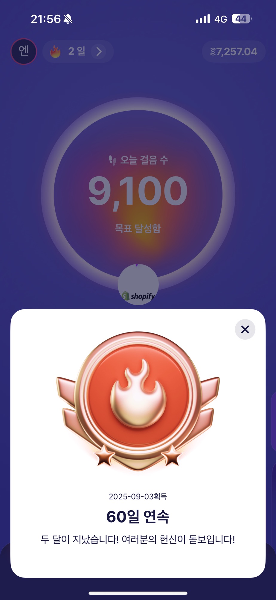 오늘 뛰고 + 걸어서 총 9100 걸음으로 약 2달러를 채굴했다.