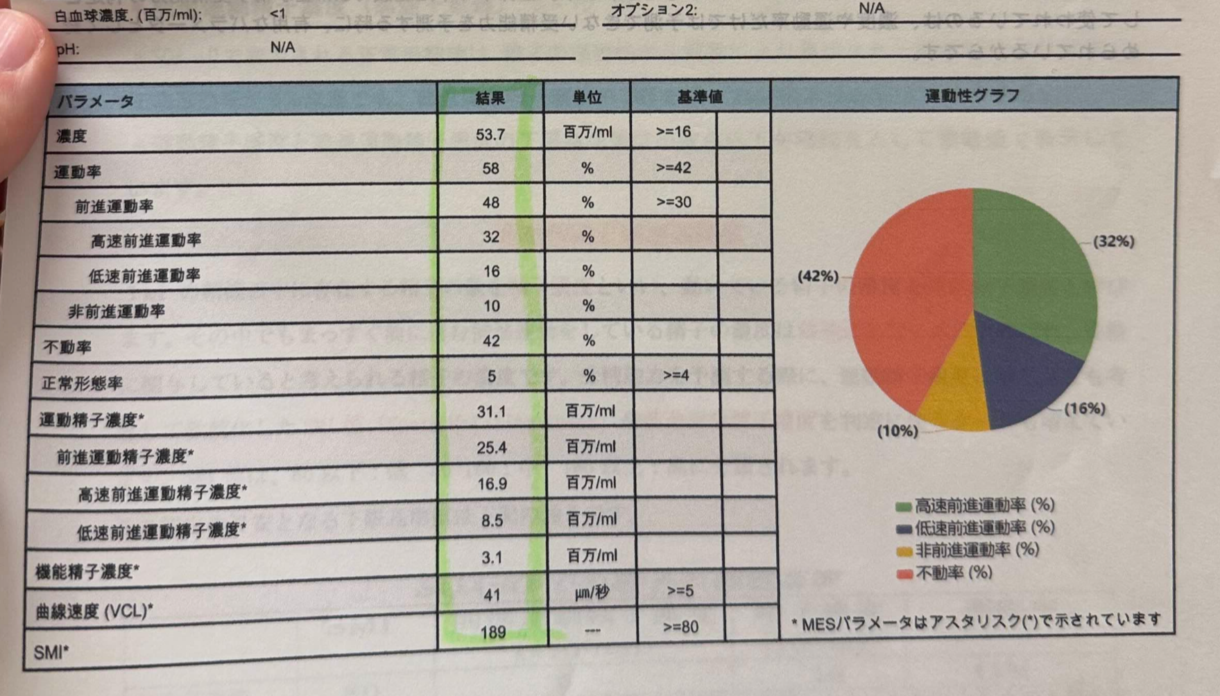 검사 결과 : 농도는 기준치 보다 약 3배 높았으며 , 운동률도 기준치보다 높고 , VCL 운동성도 기준치보다 8배 높았다.
