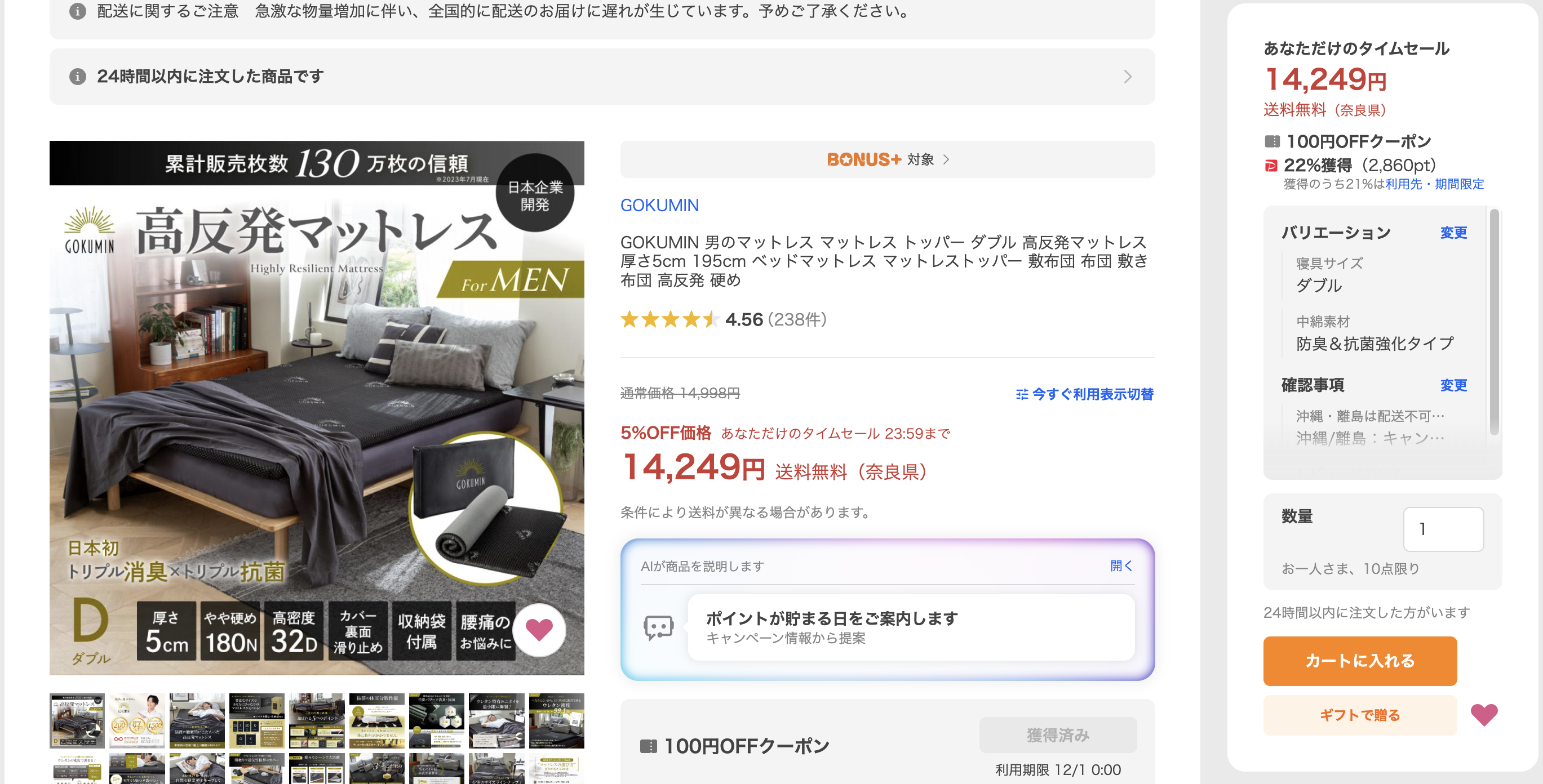 덕분에 원가 14,999엔짜리를 11,879엔에 구매했다.