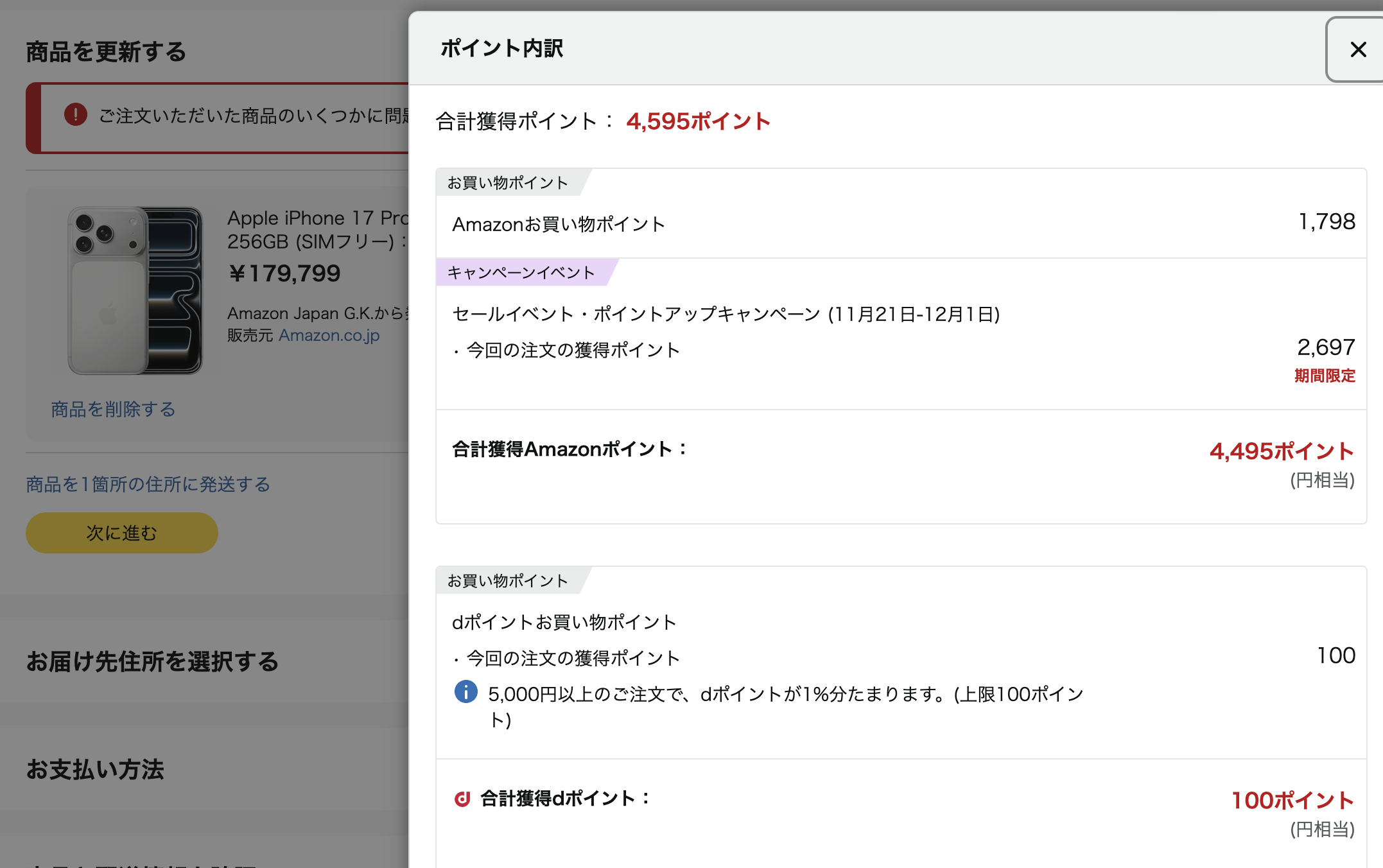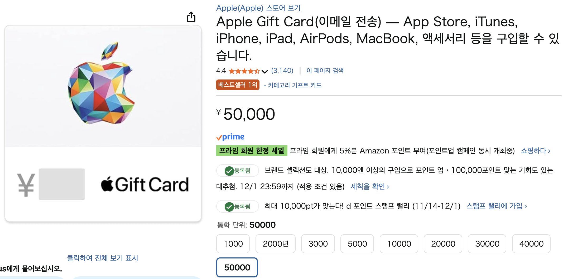 애플 스토어에서 사면 포인트가 아예 없지만,아마존에서는 포인트만으로도 수천 엔이 돌아오니